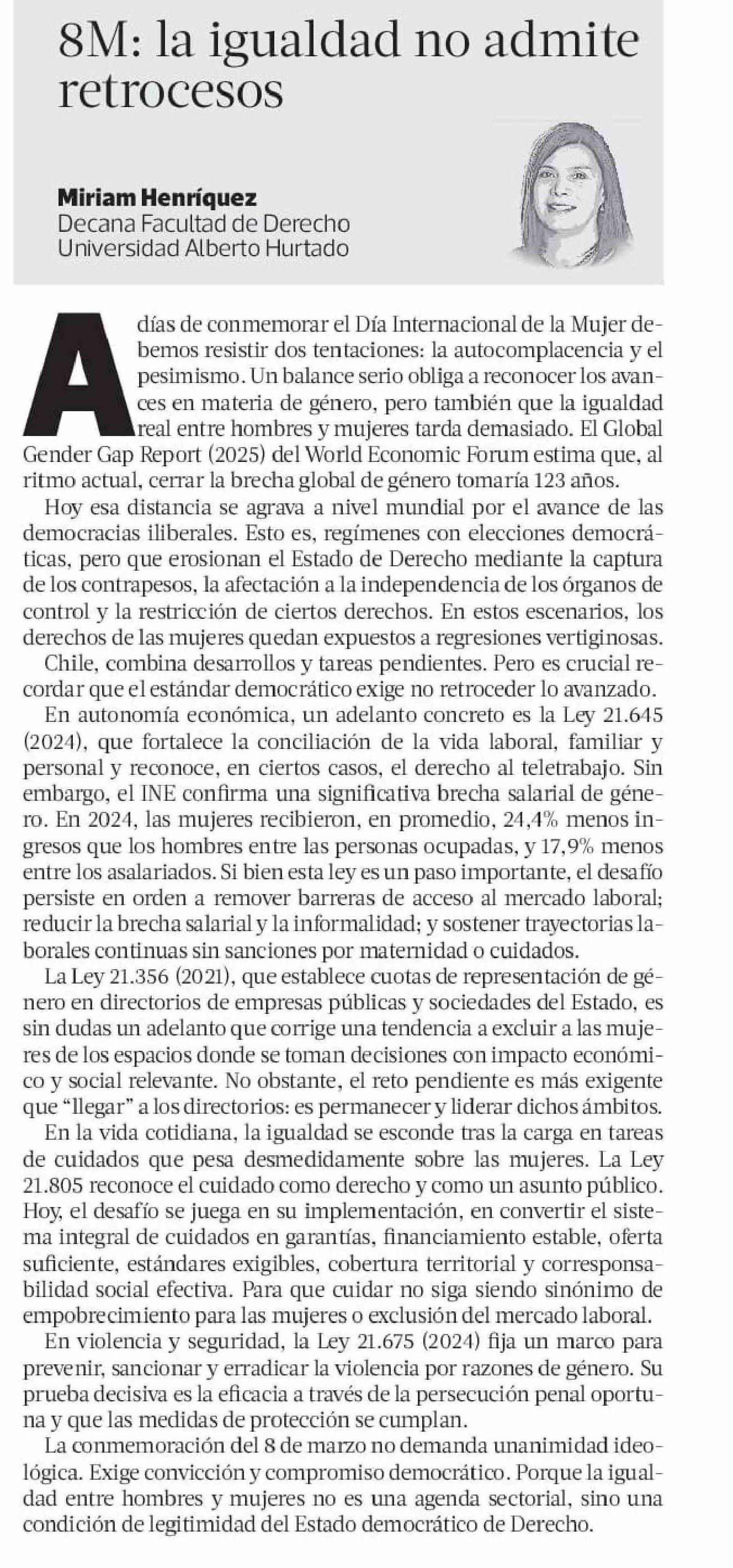 COLUMNAS DE OPINIÓN: la igualdad no admite retrocesos