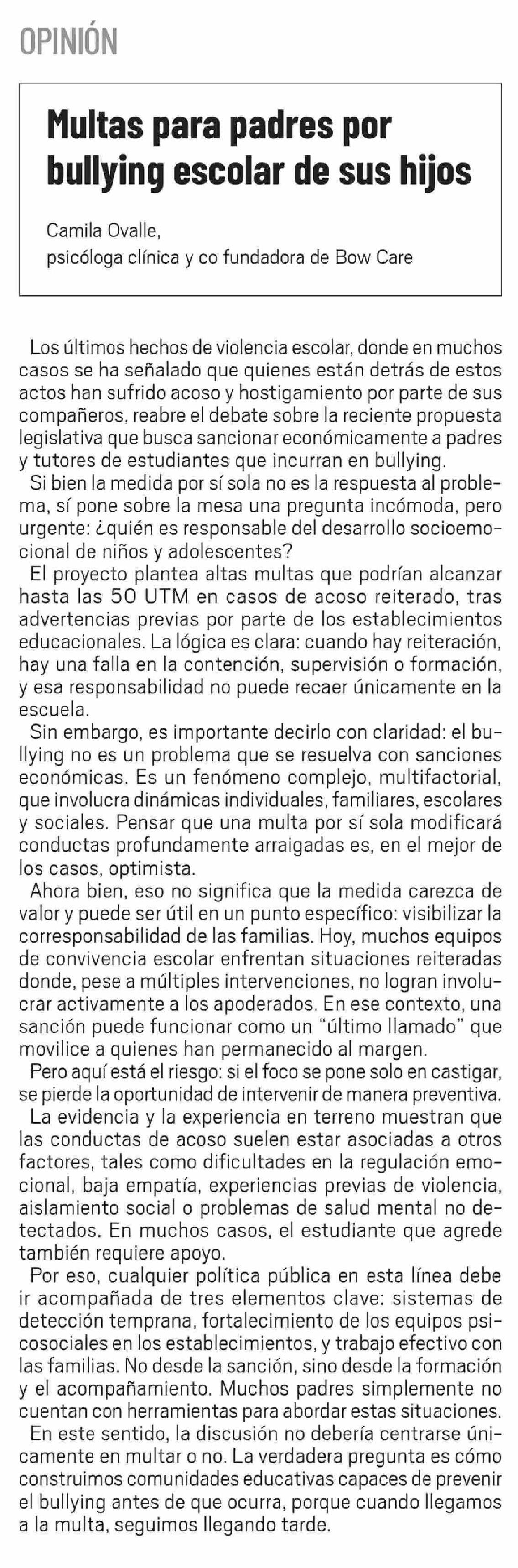 Columnas de Opinión: Multas para padres por bullying escolar de sus hijos