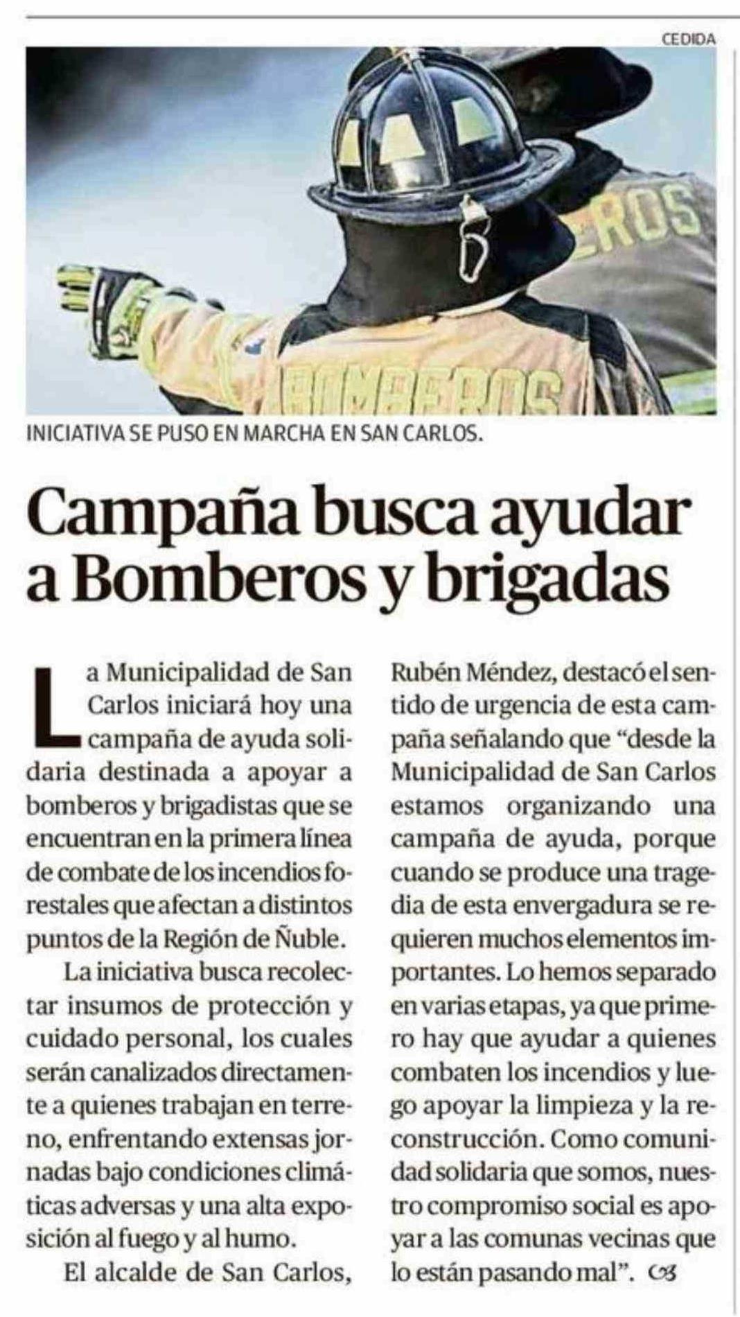 Campaña busca ayudar a Bomberos y brigadas
