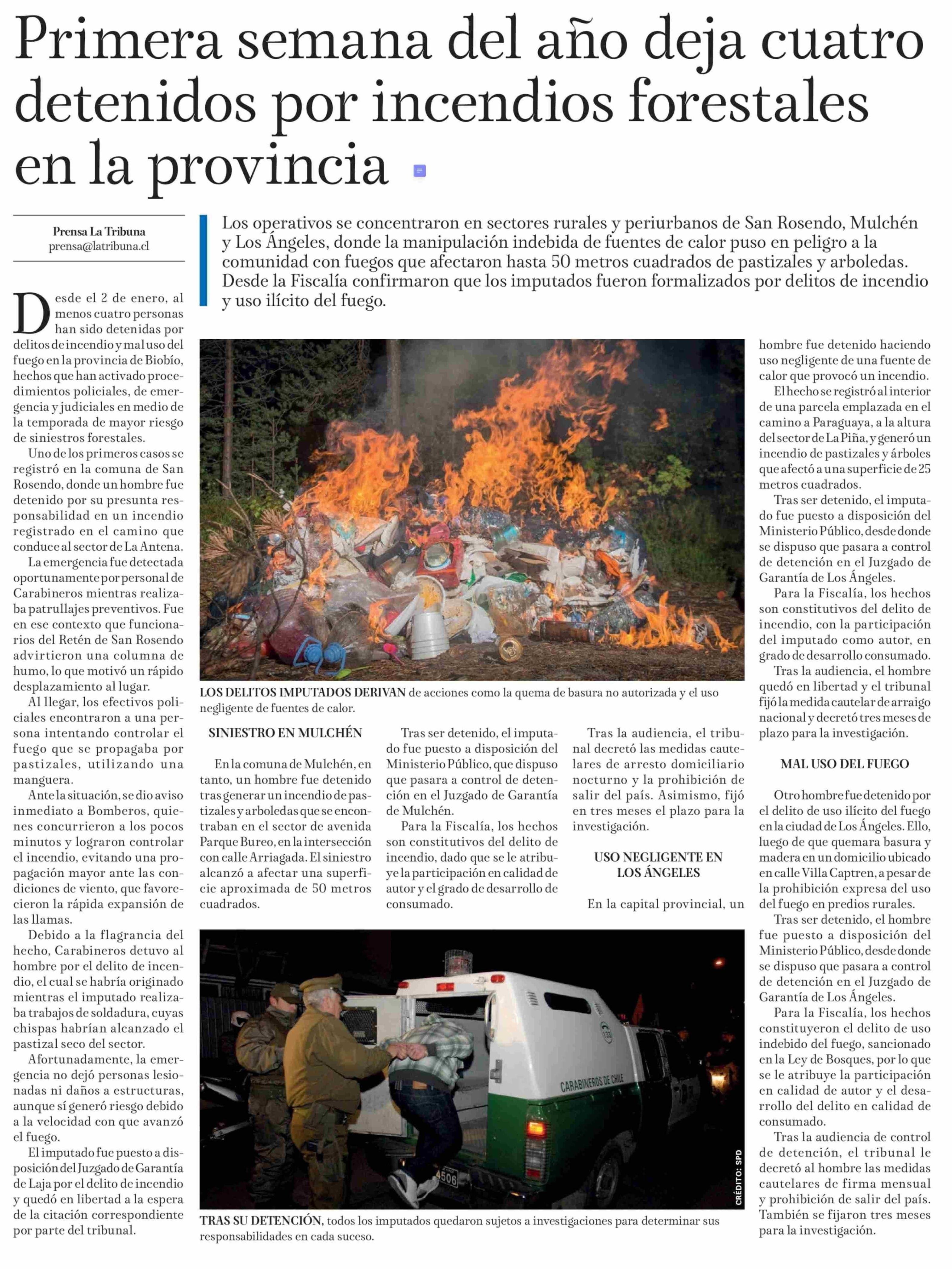 Primera semana del año deja cuatro detenidos por incendios forestales en la provincia