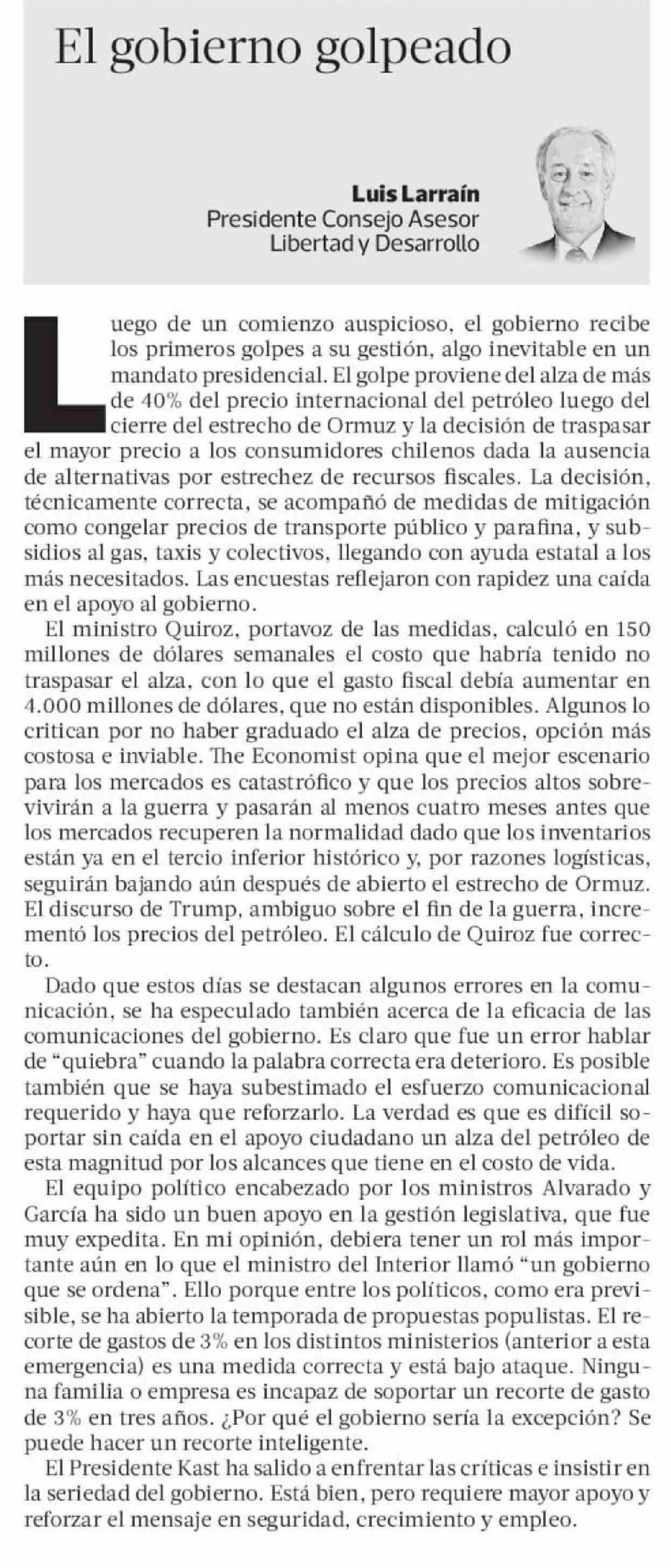 Columnas de Opinión: El gobierno golpeado