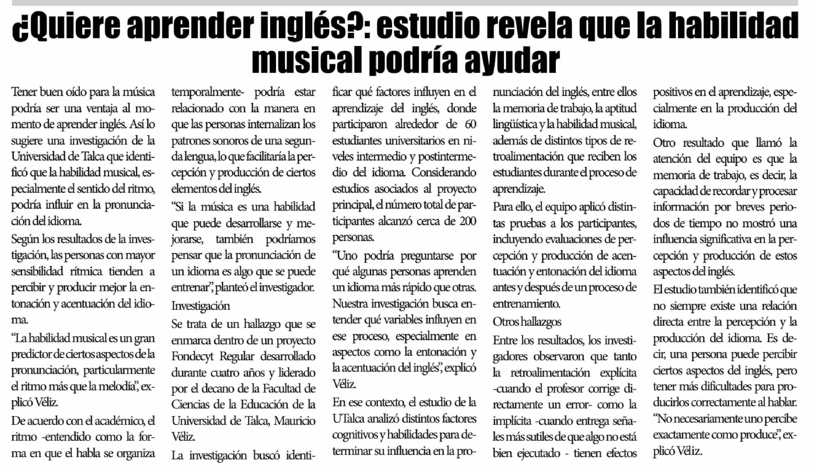 ¿Quiere aprender inglés ?: estudio revela que la habilidad musical podría ayudar