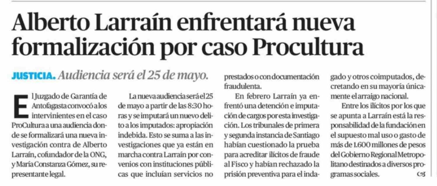 Alberto Larraín enfrentará nueva formalización por caso Procultura