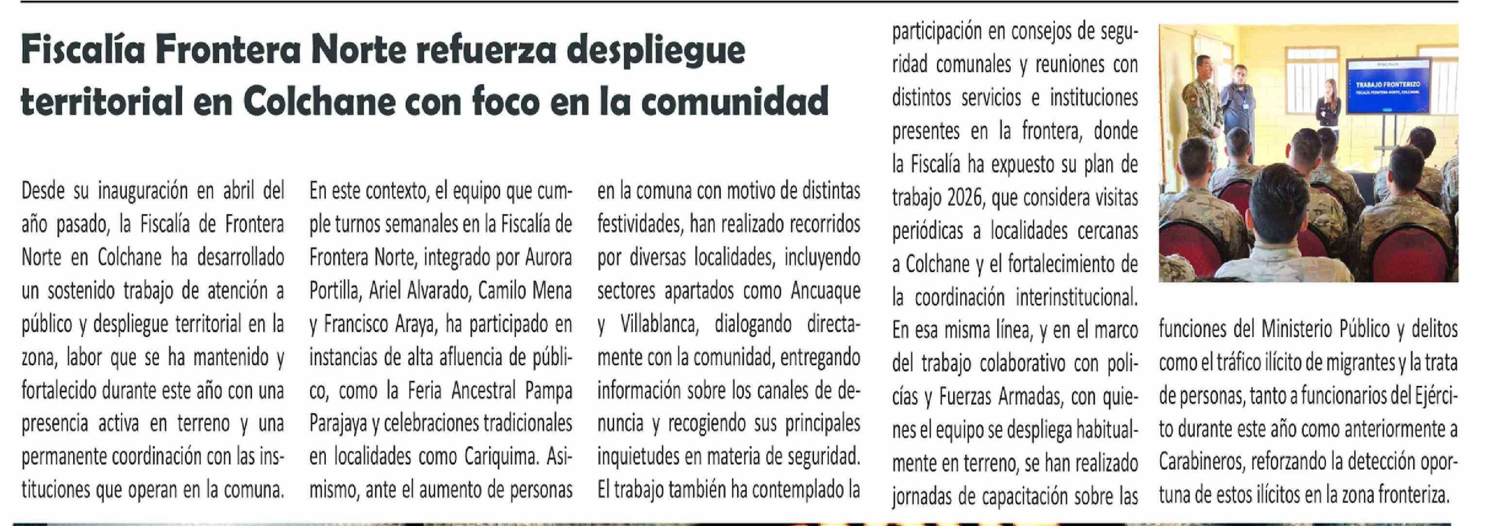 Fiscalía Frontera Norte refuerza despliegue territorial en Colchane con foco en la comunidad