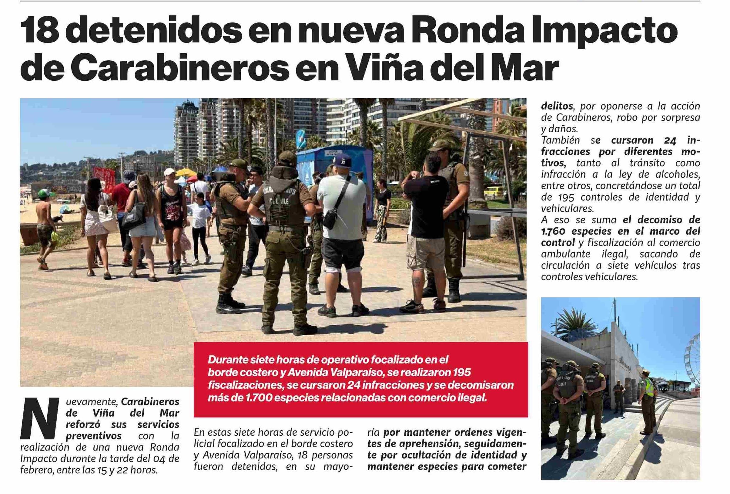 18 detenidos en nueva Ronda Impacto de Carabineros en Viña del Mar