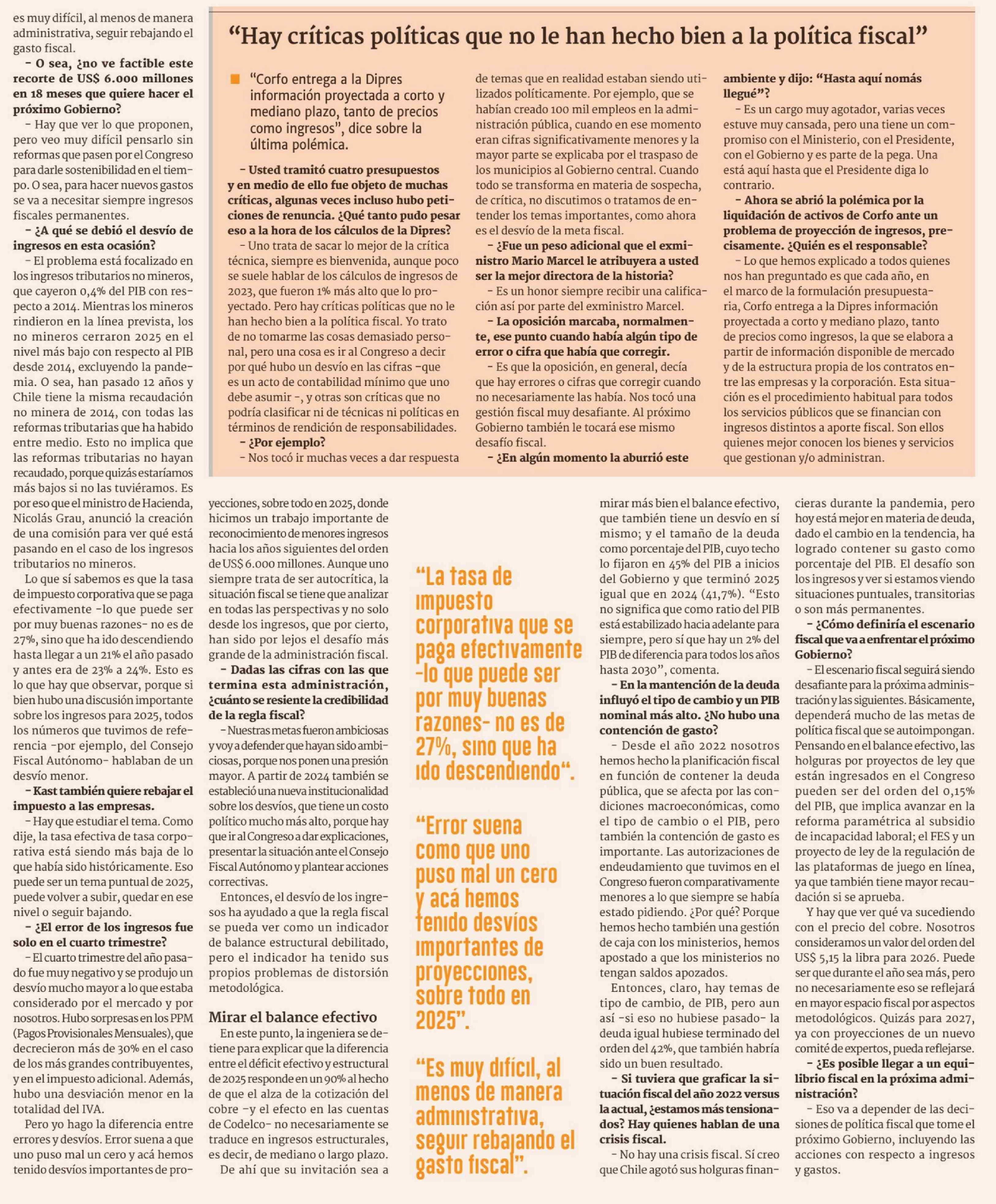 'No hay una crisis fiscal. Sí creo que Chile agotó sus holguras financieras durante la pandemia"
