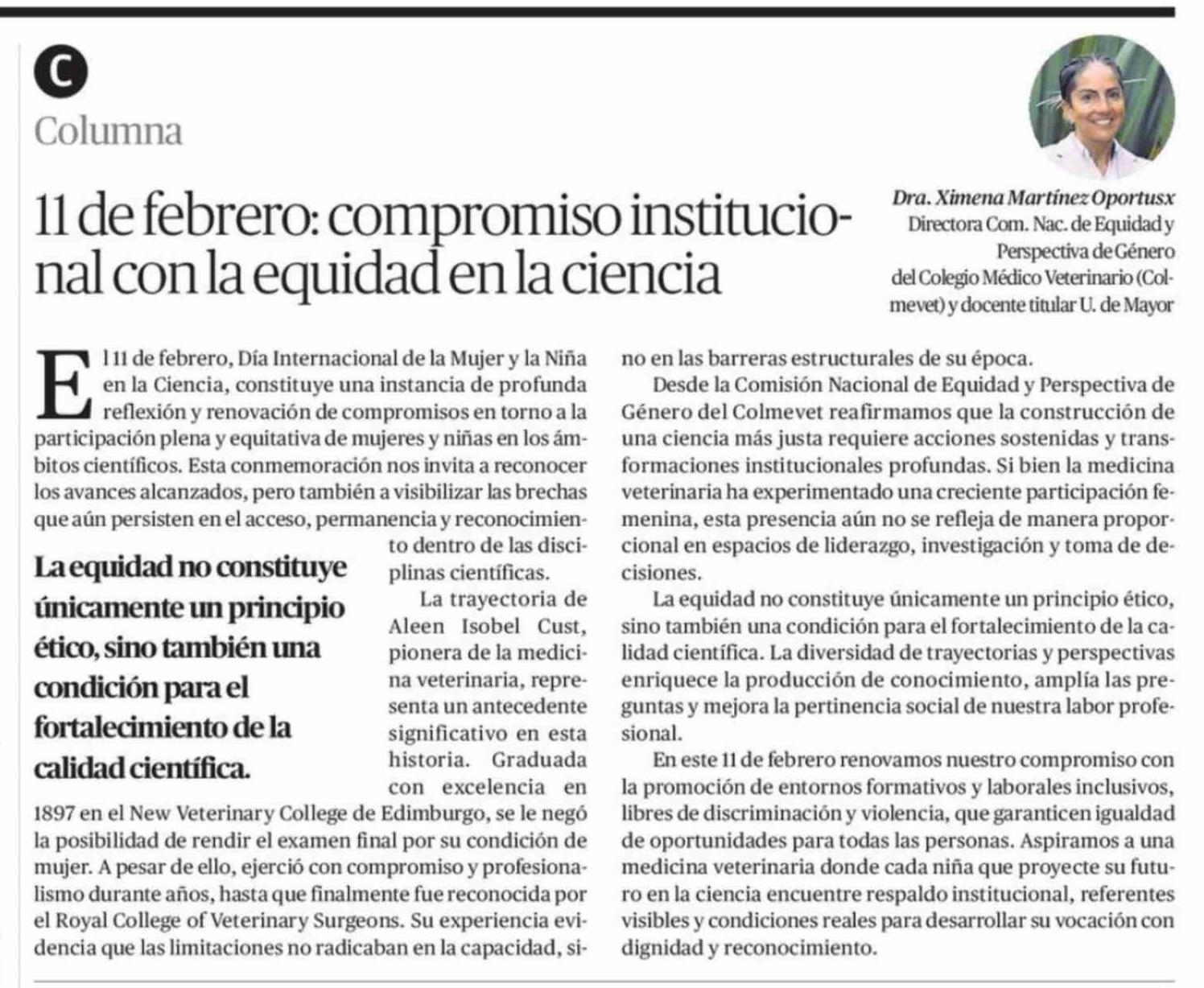 Columnas de Opinión: 11 De febrero: compromiso institucional con la equidad en la ciencia