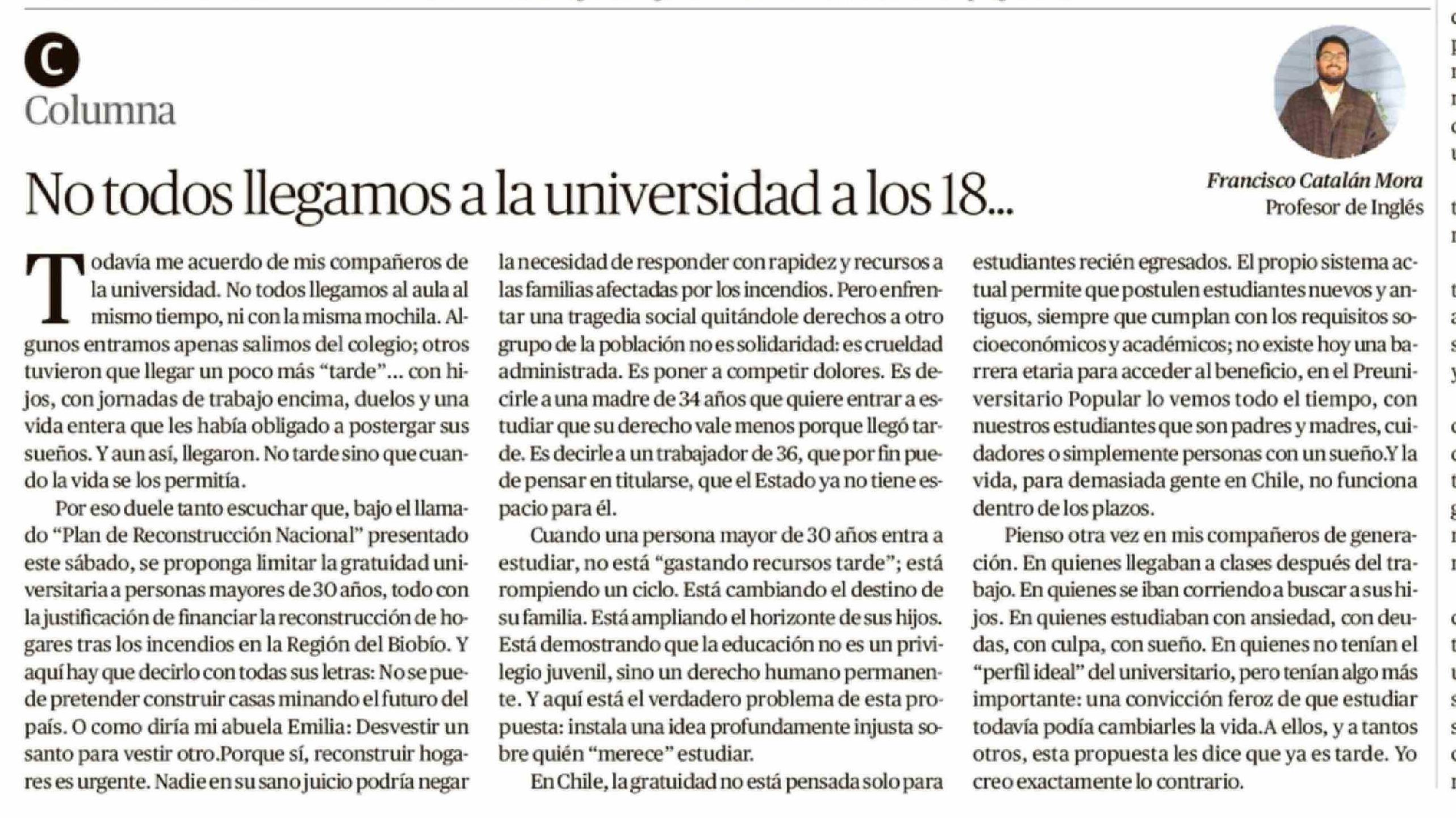 Columnas de Opinión: No todos llegamos a la universidad a los 18 ...