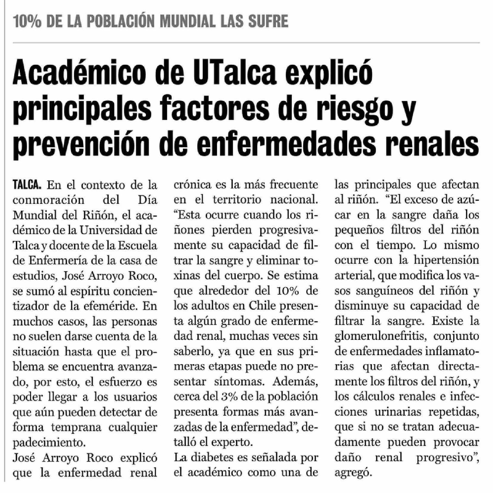 Título: Académico de UTalca explicó principales factores de riesgo y prevención de enfermedades renales