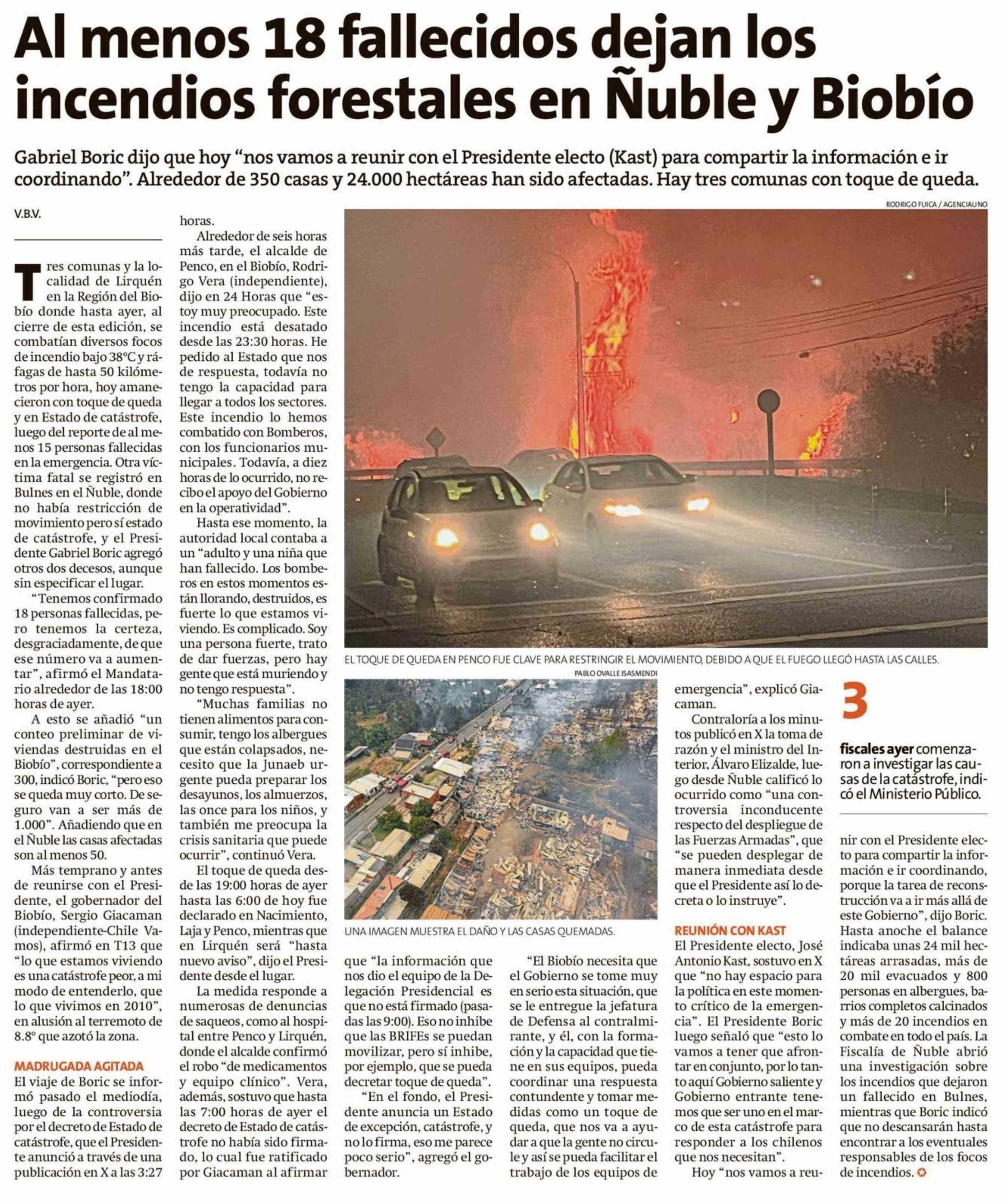 Al menos 18 fallecidos dejan los incendios forestales en Nuble y Biobio