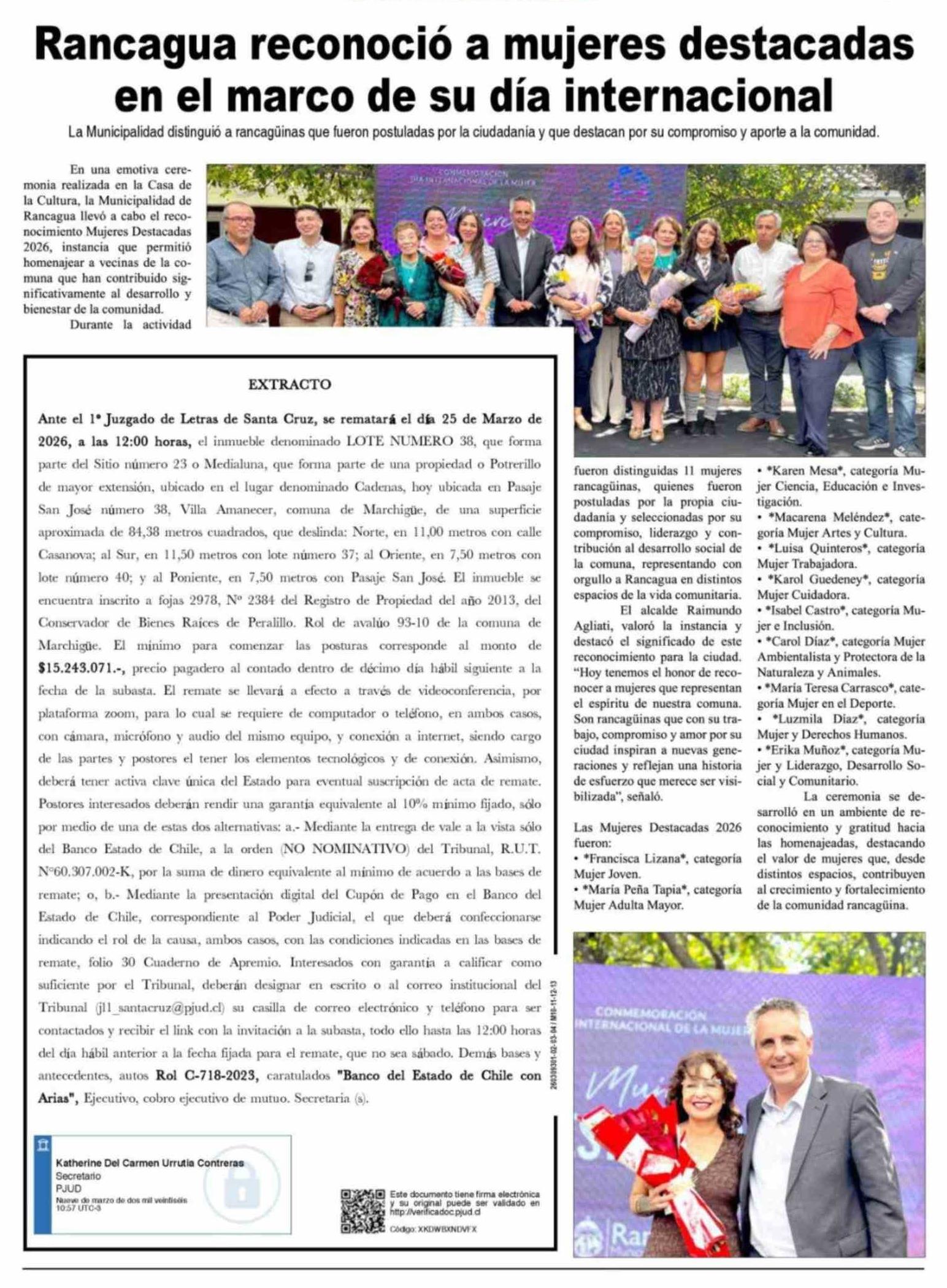 Rancagua reconoció a mujeres destacadas en el marco de su día internacional