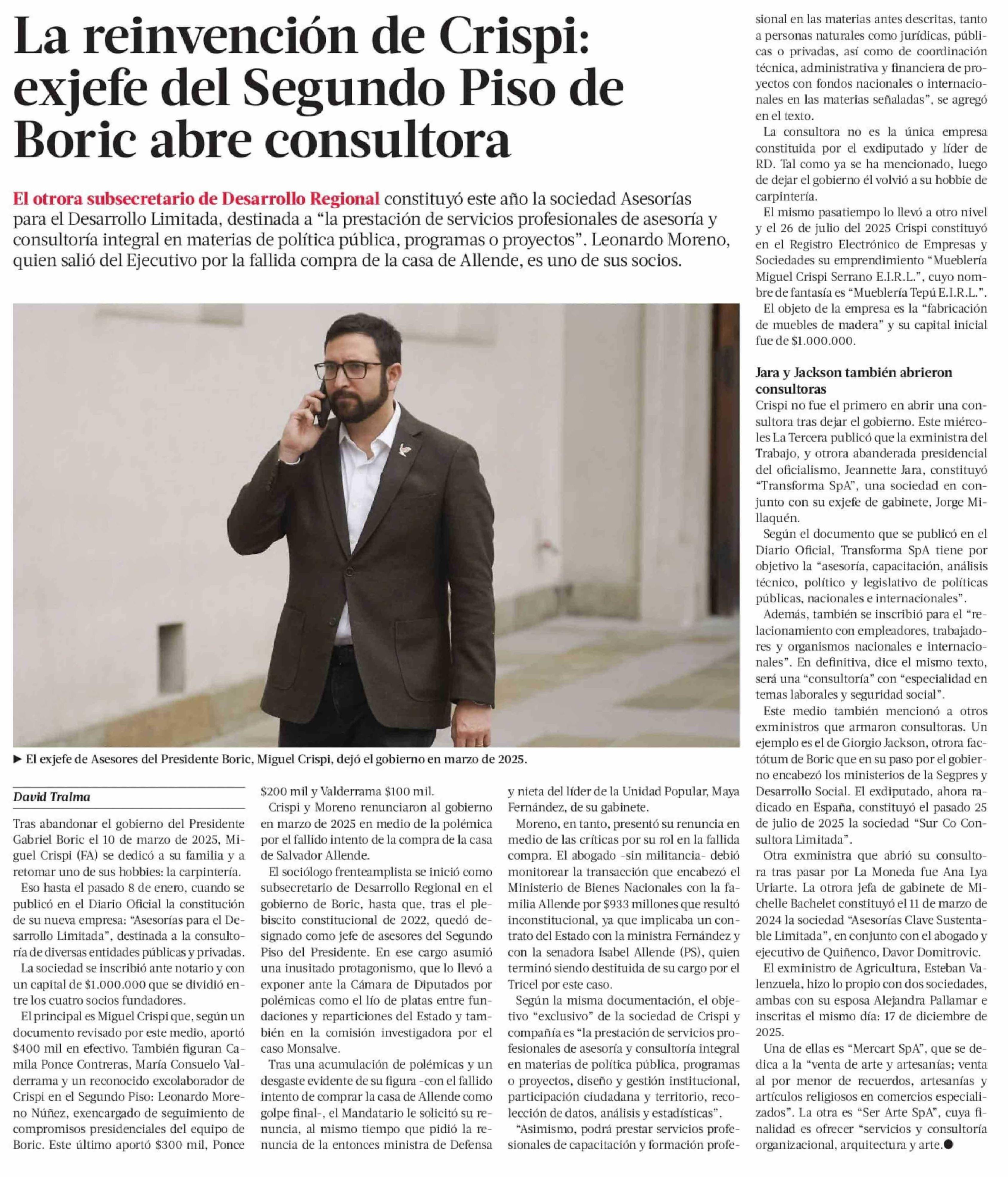 La reinvención de Crispi: exjefe del Segundo Piso de Boric abre consultora