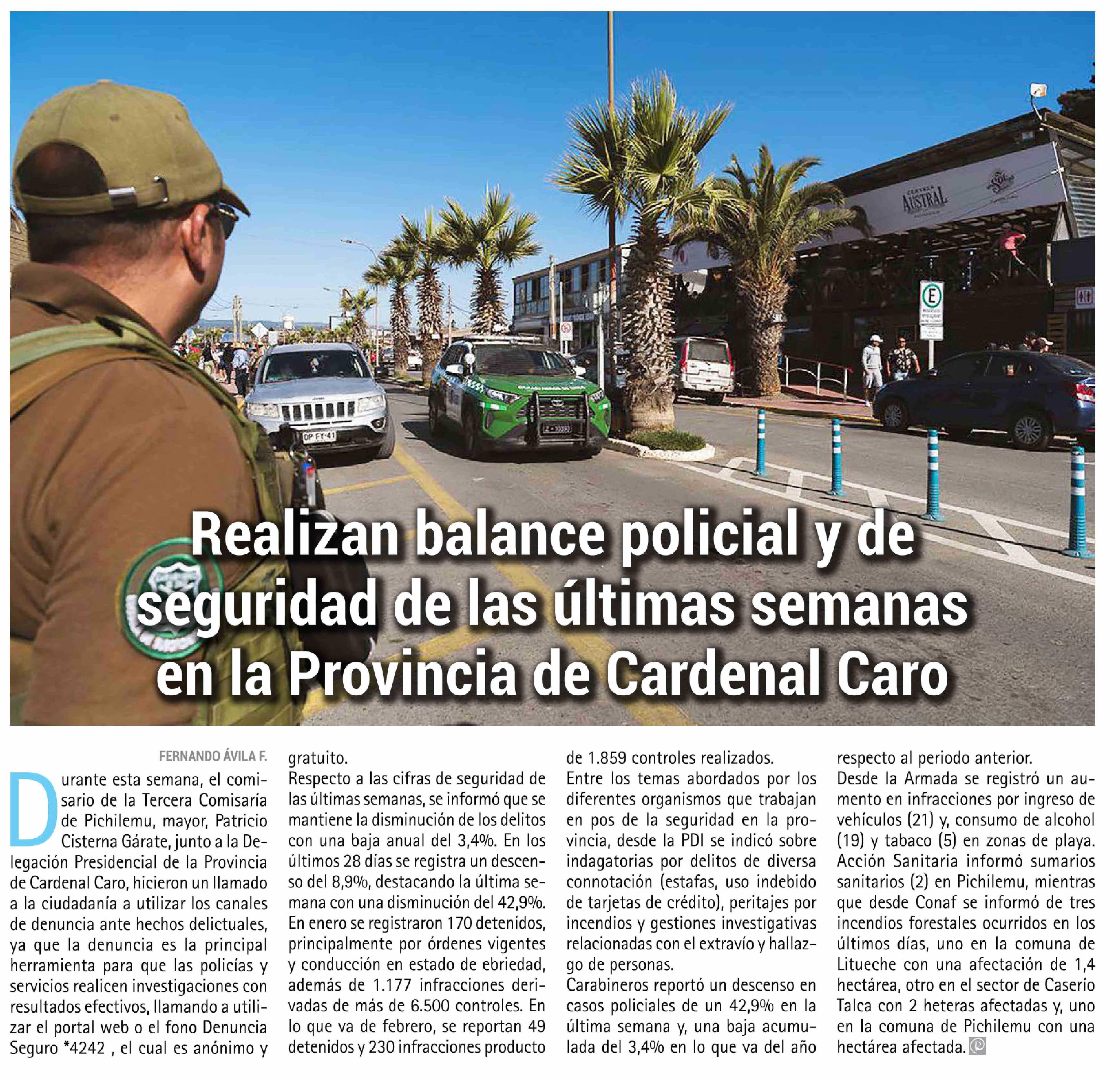 Realizan balance policial y de seguridad de las últimas semanas en la Provincia de Cardenal Caro