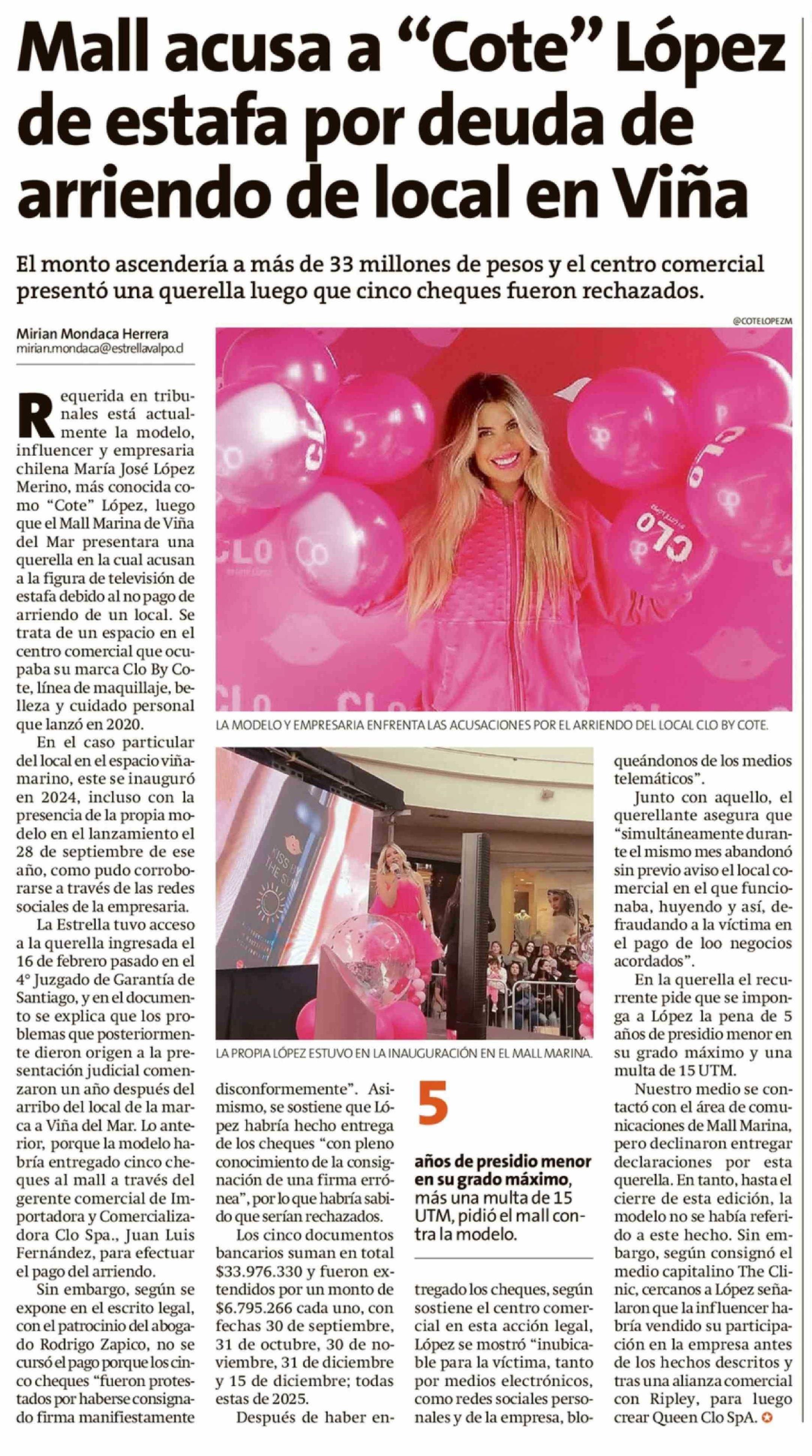 Mall acusa a "Cote" López de estafa por deuda de arriendo de local en Viña