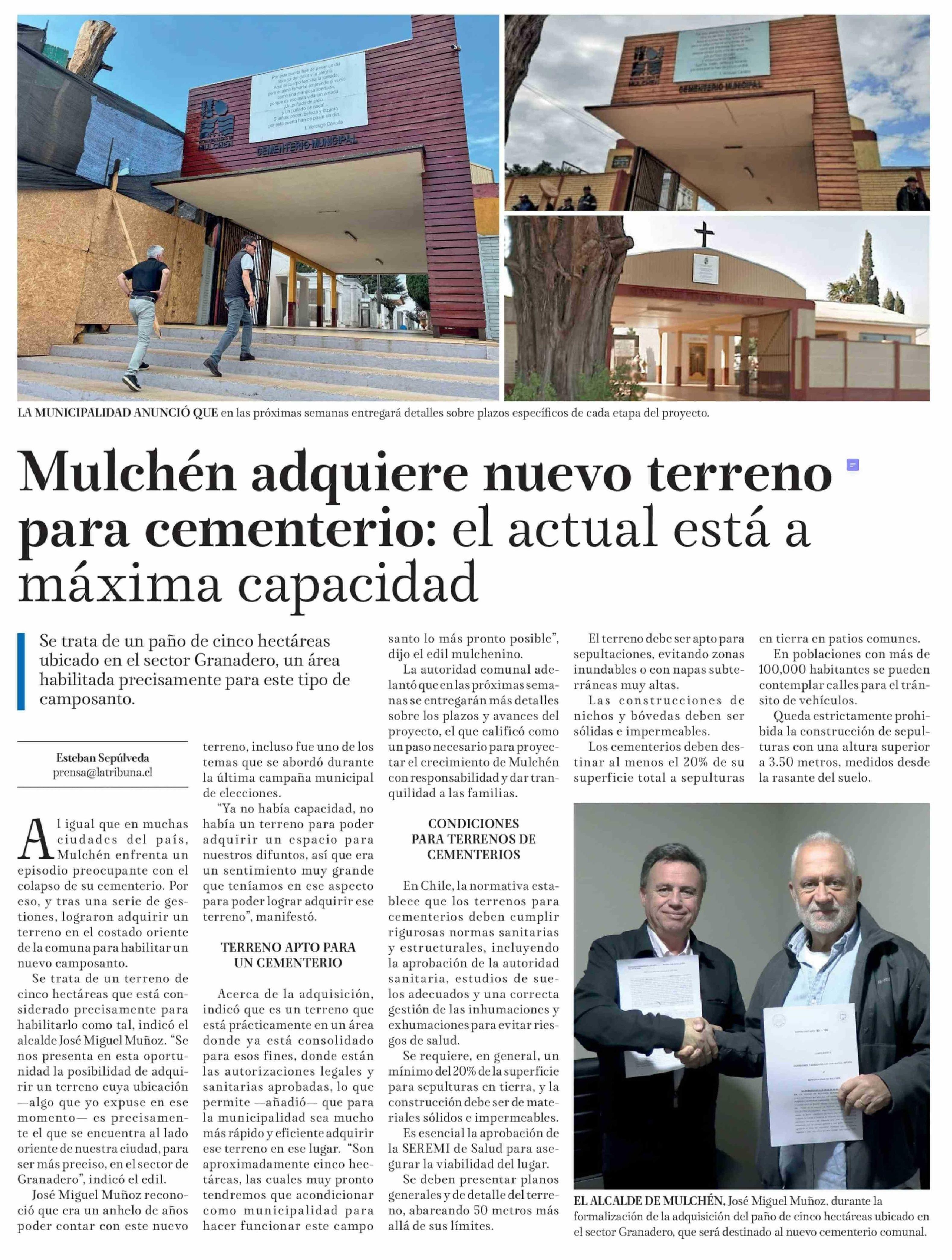 Mulchén adquiere nuevo terreno para cementerio: el actual está a máxima capacidad