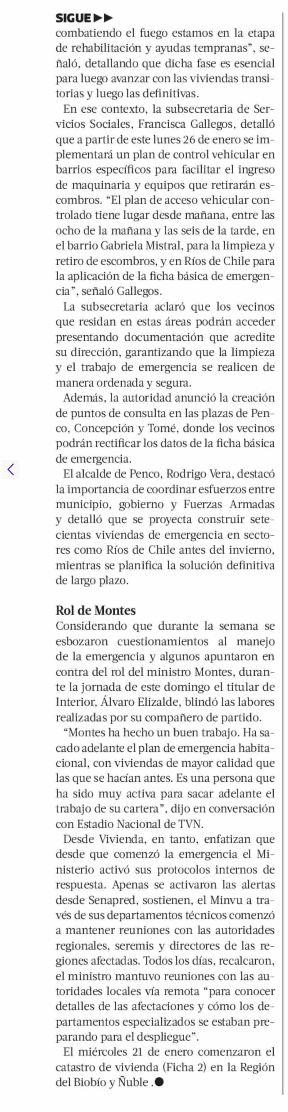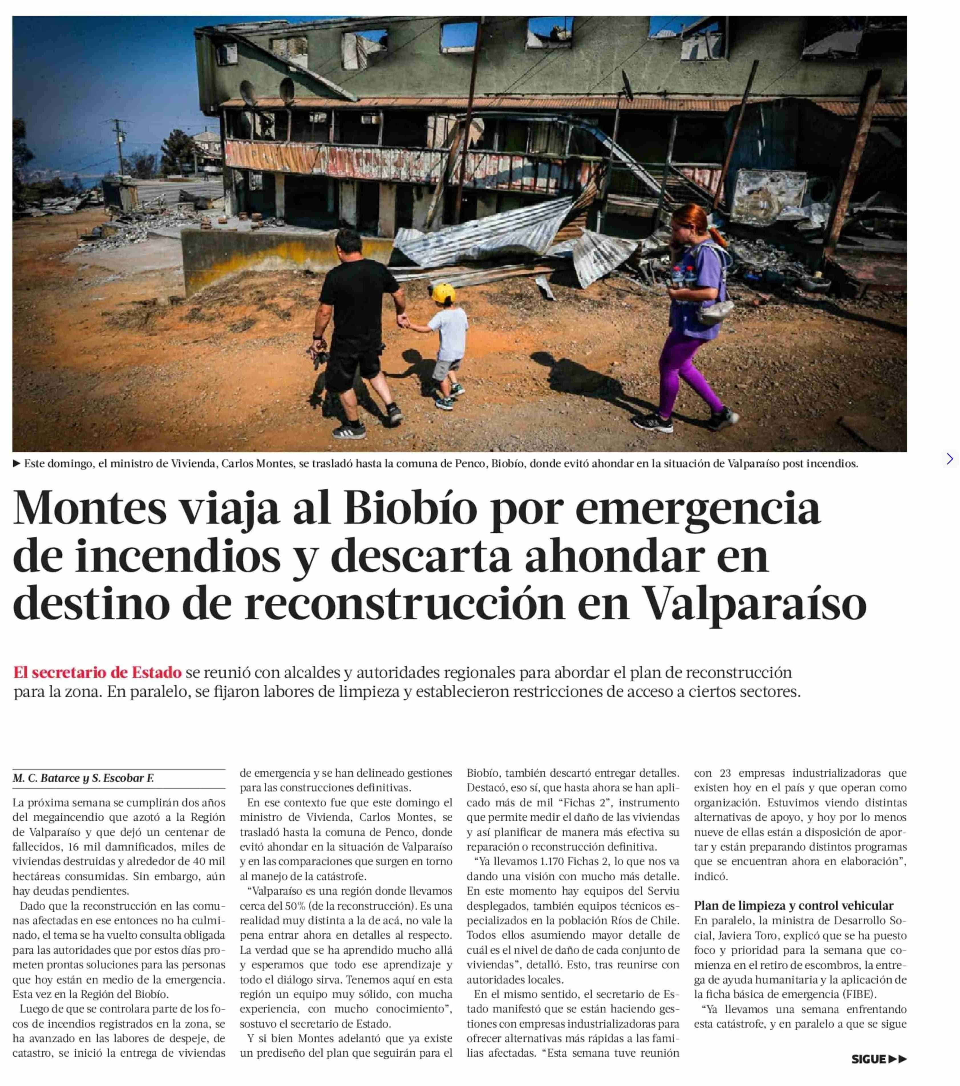 Montes viaja al Biobío por emergencia de incendios y descarta ahondar en destino de reconstrucción en Valparaíso