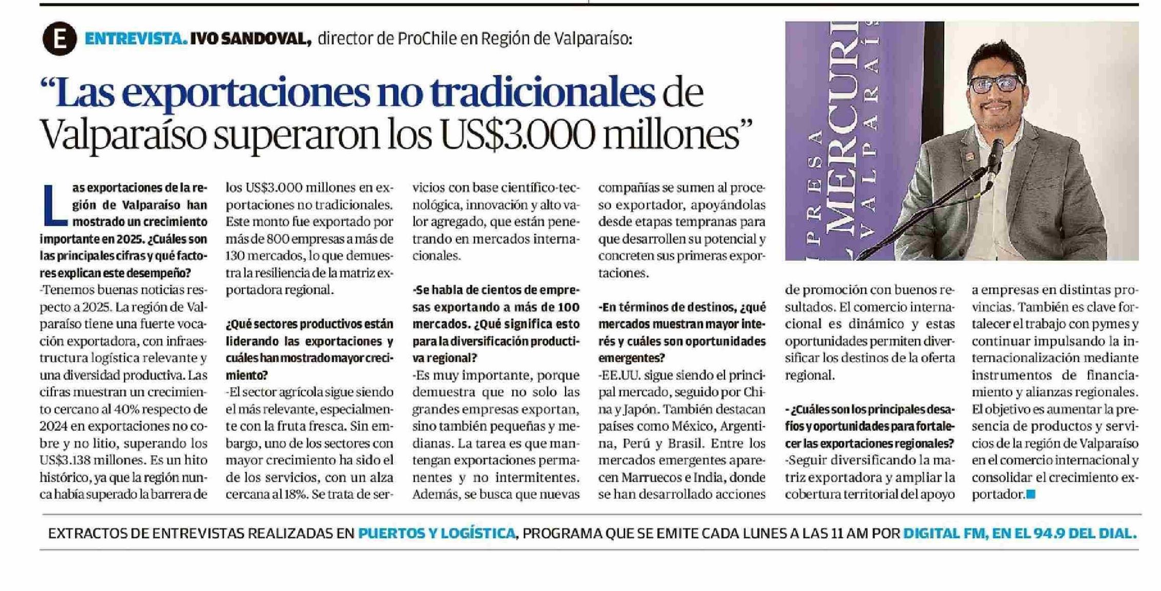 “Las exportaciones no tradicionales de Valparaíso superaron los US$3.000 millones”