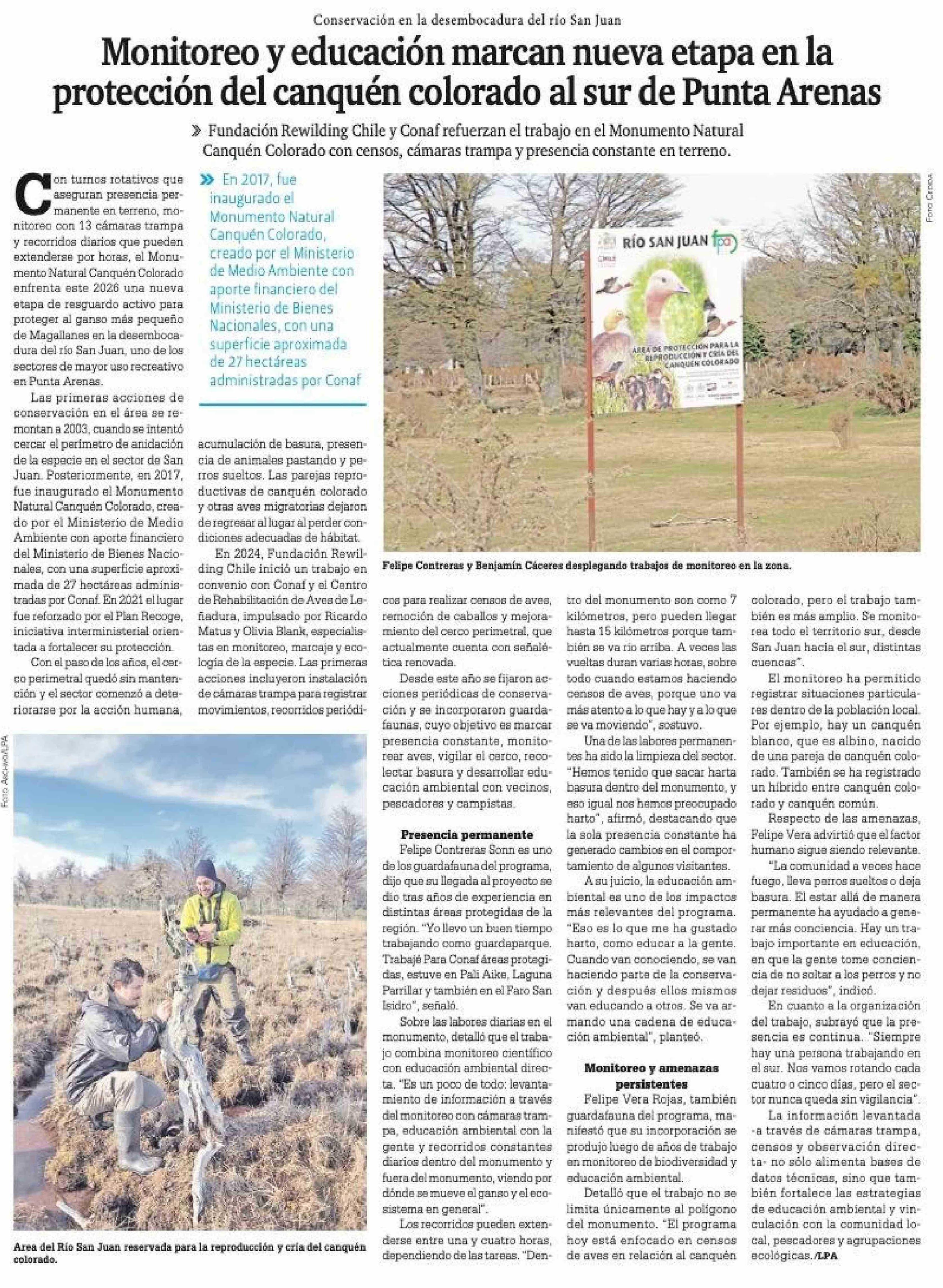 Monitoreo y educación marcan nueva etapa en la protección del canquén colorado al sur de Punta Arenas