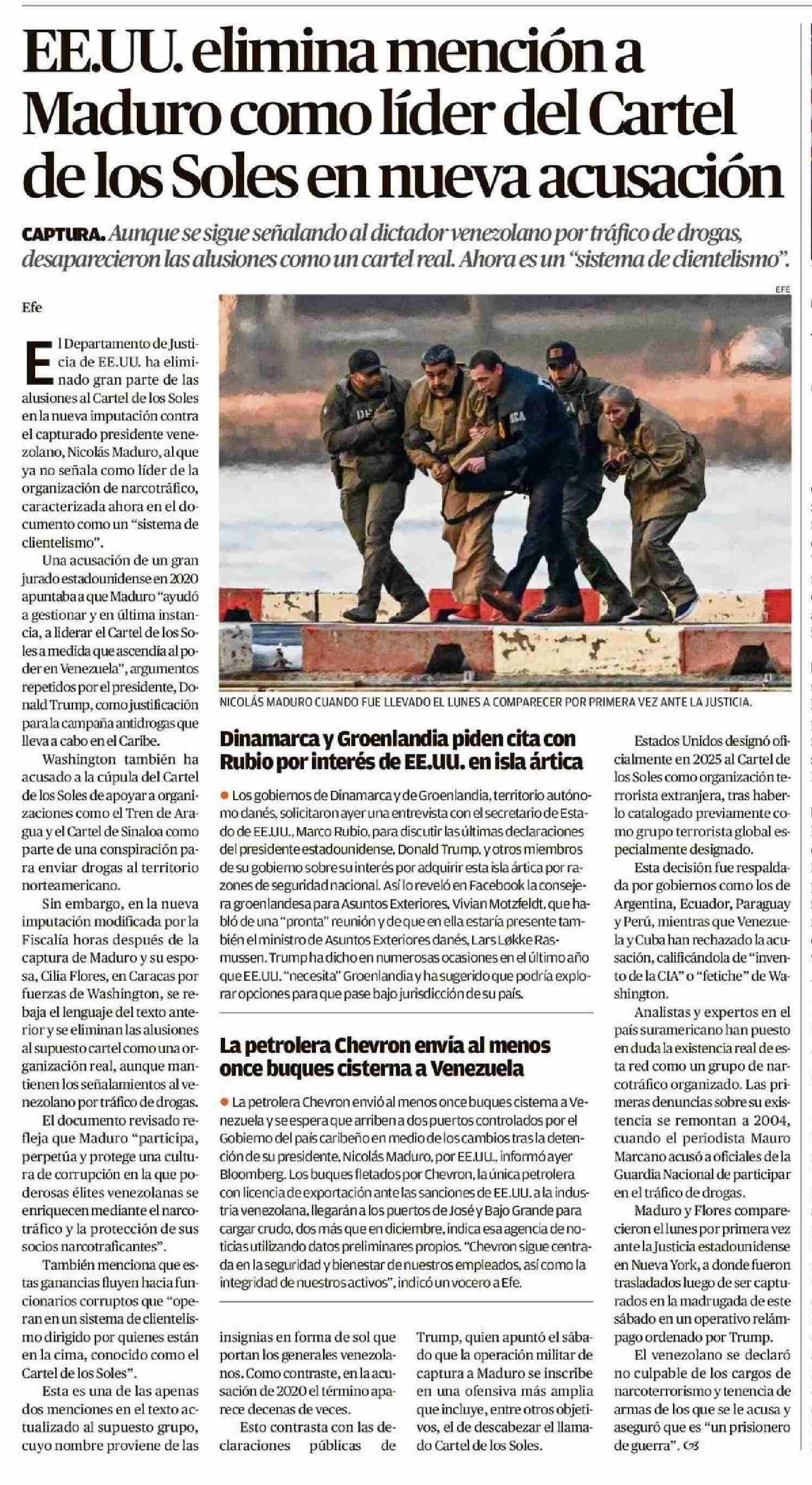 EE.UU. elimina mención a Maduro como líder del Cartel de los Soles en nueva acusación