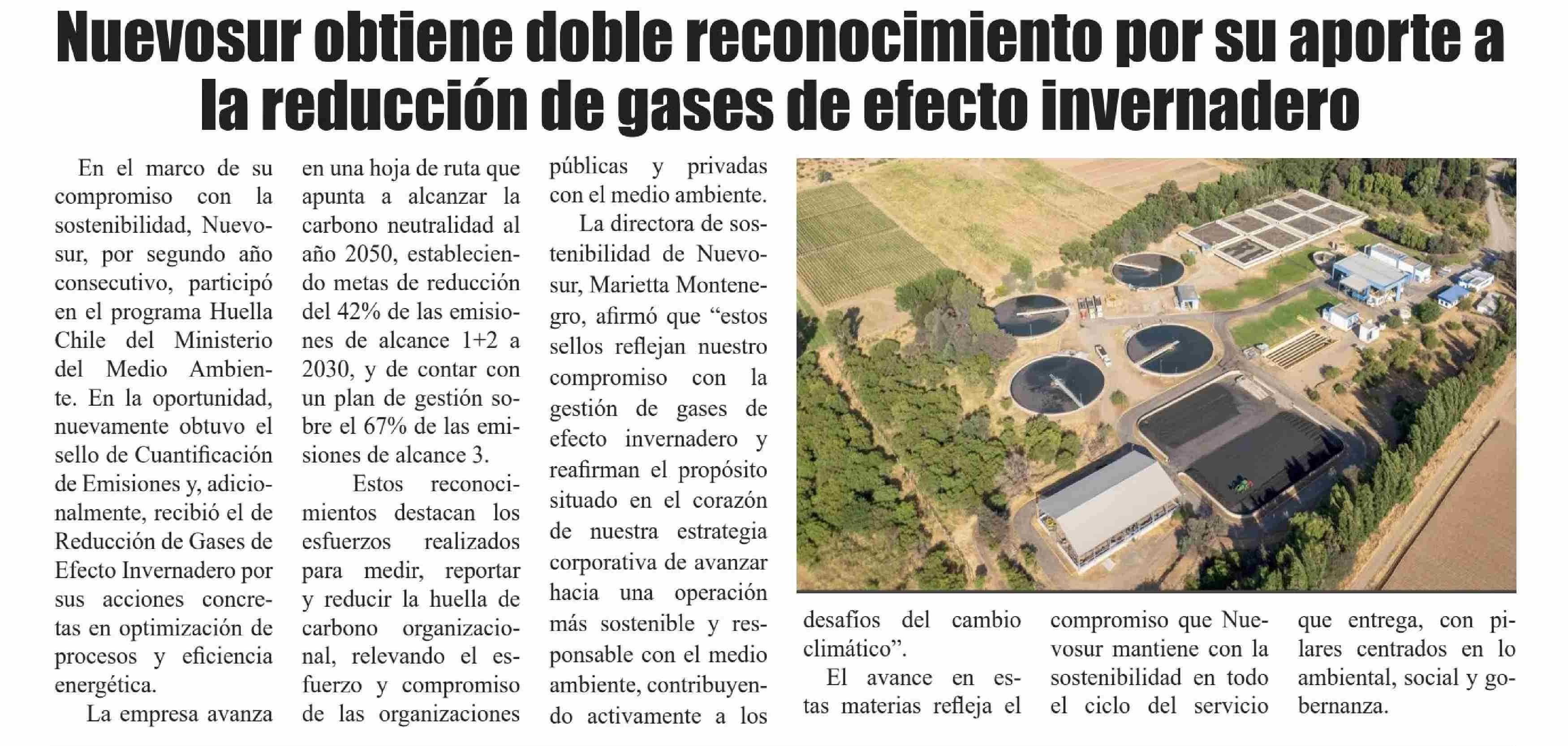 Nuevosur obtiene doble reconocimiento por su aporte a la reducción de gases de efecto invernadero