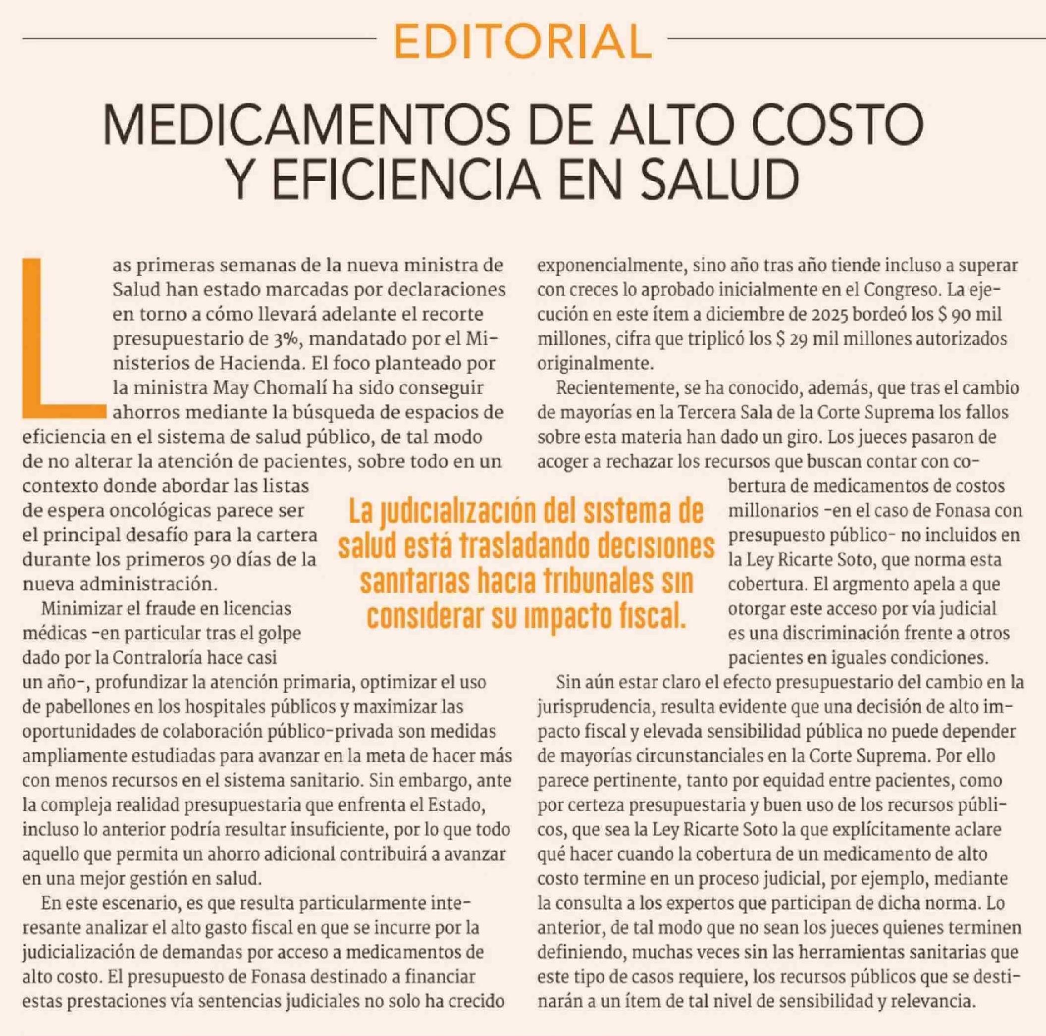 Editorial: MEDICAMENTOS DE ALTO COSTO Y EFICIENCIA EN SALUD