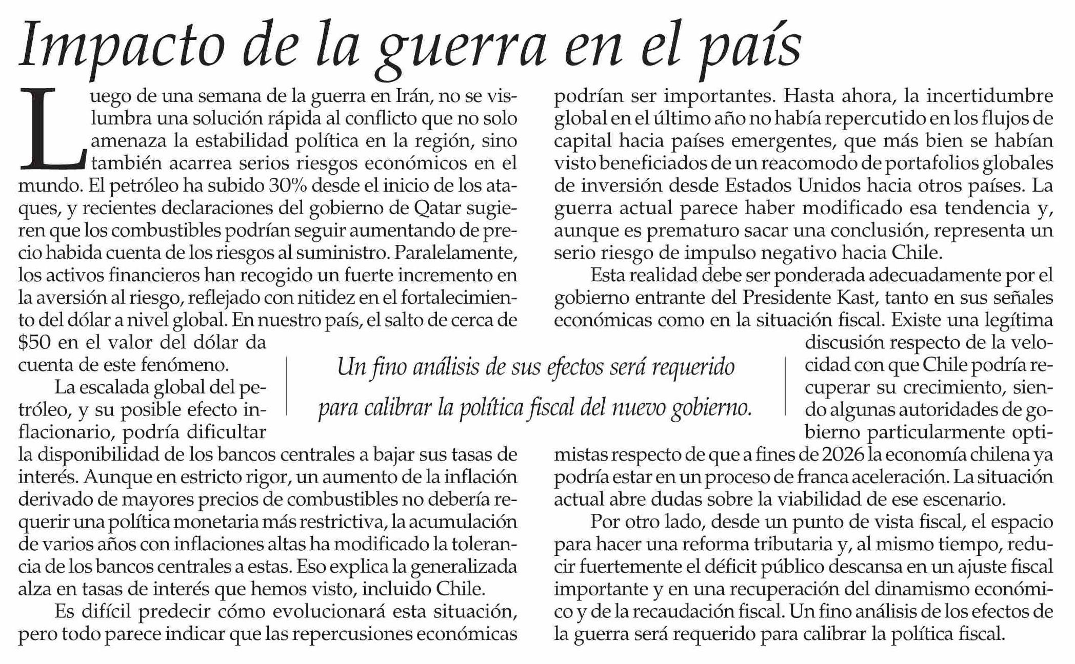 Editorial: Impacto de la guerra en el país