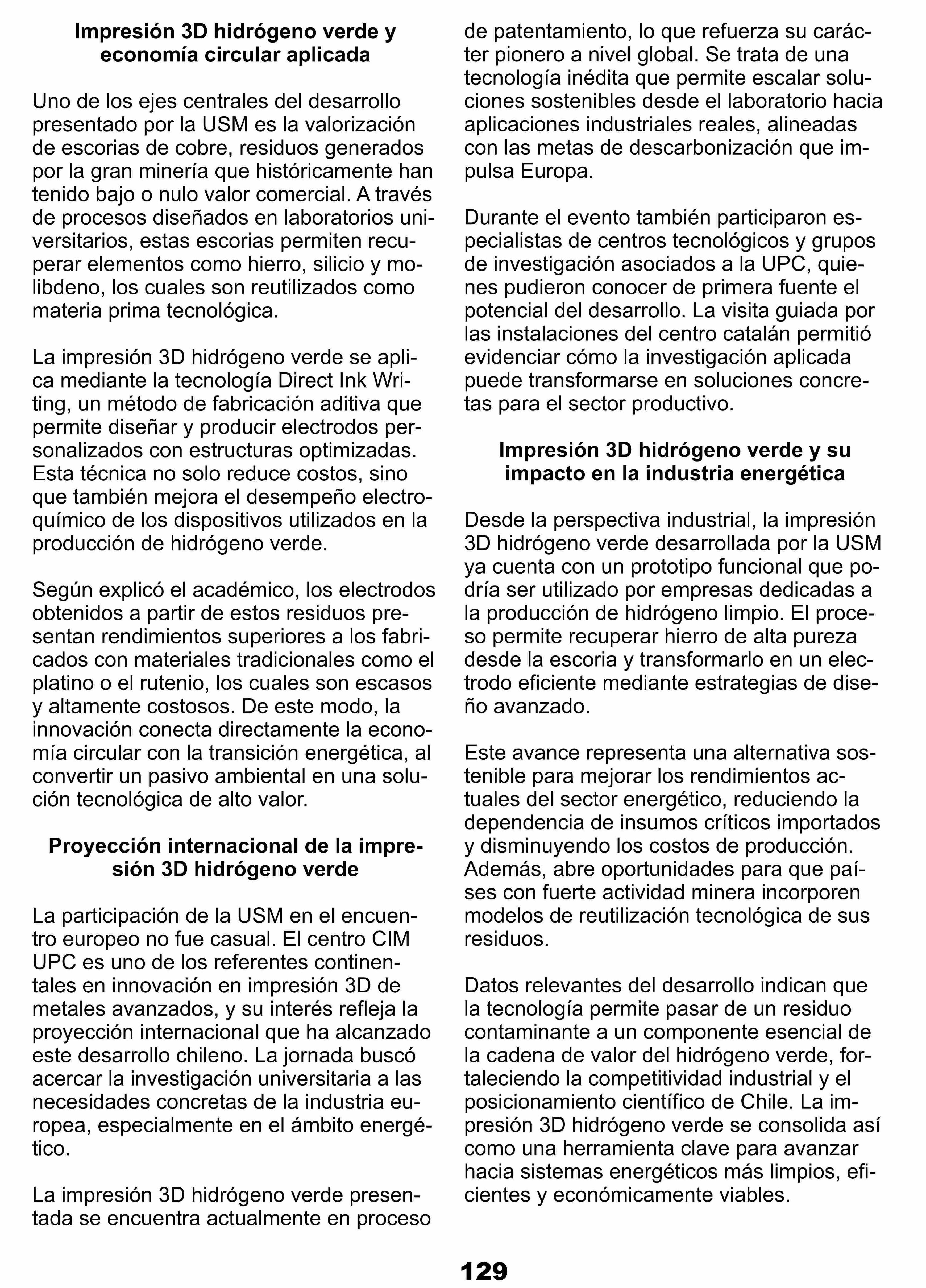| Título: | 3 Claves de la innovación en impresión 3D hidrógeno verde liderada por la USM |