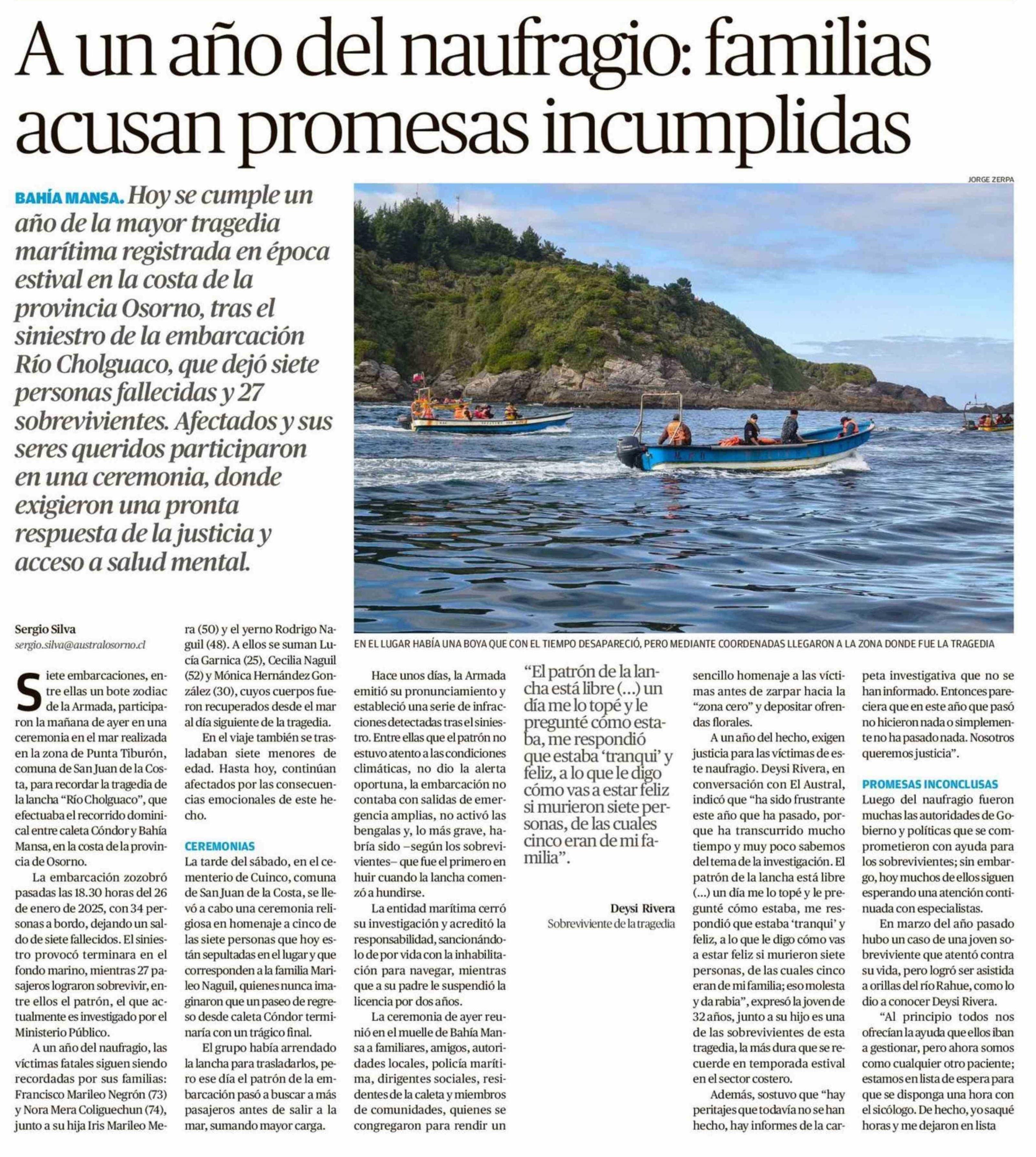 Título: A un año del naufragio: familias acusan promesas incumplidas
