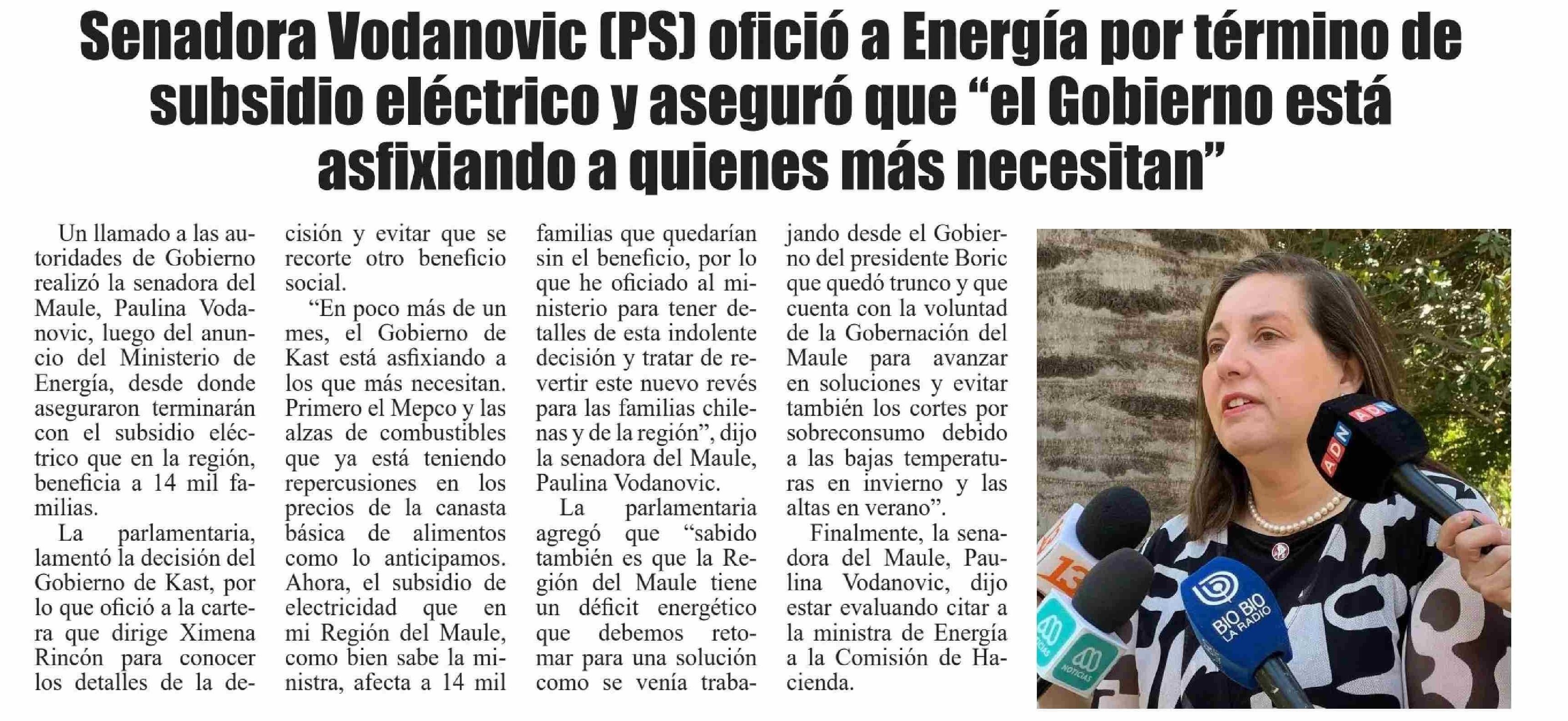 Senadora Vodanovic (PS) ofició a Energía por término de subsidio eléctrico y aseguró que " el Gobierno está asfixiando a quienes más necesitan"