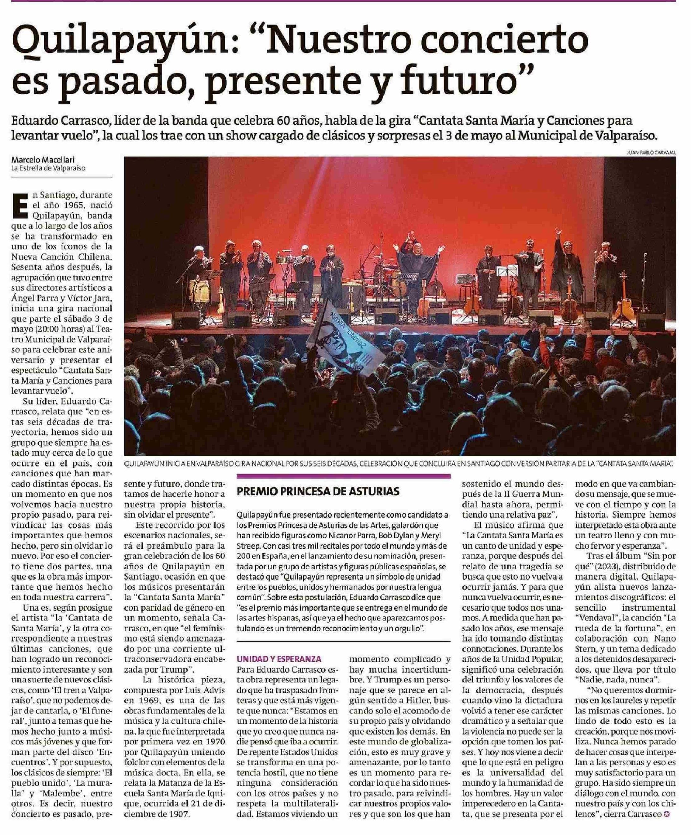 Quilapayún: “Nuestro concierto es pasado, presente y futuro”