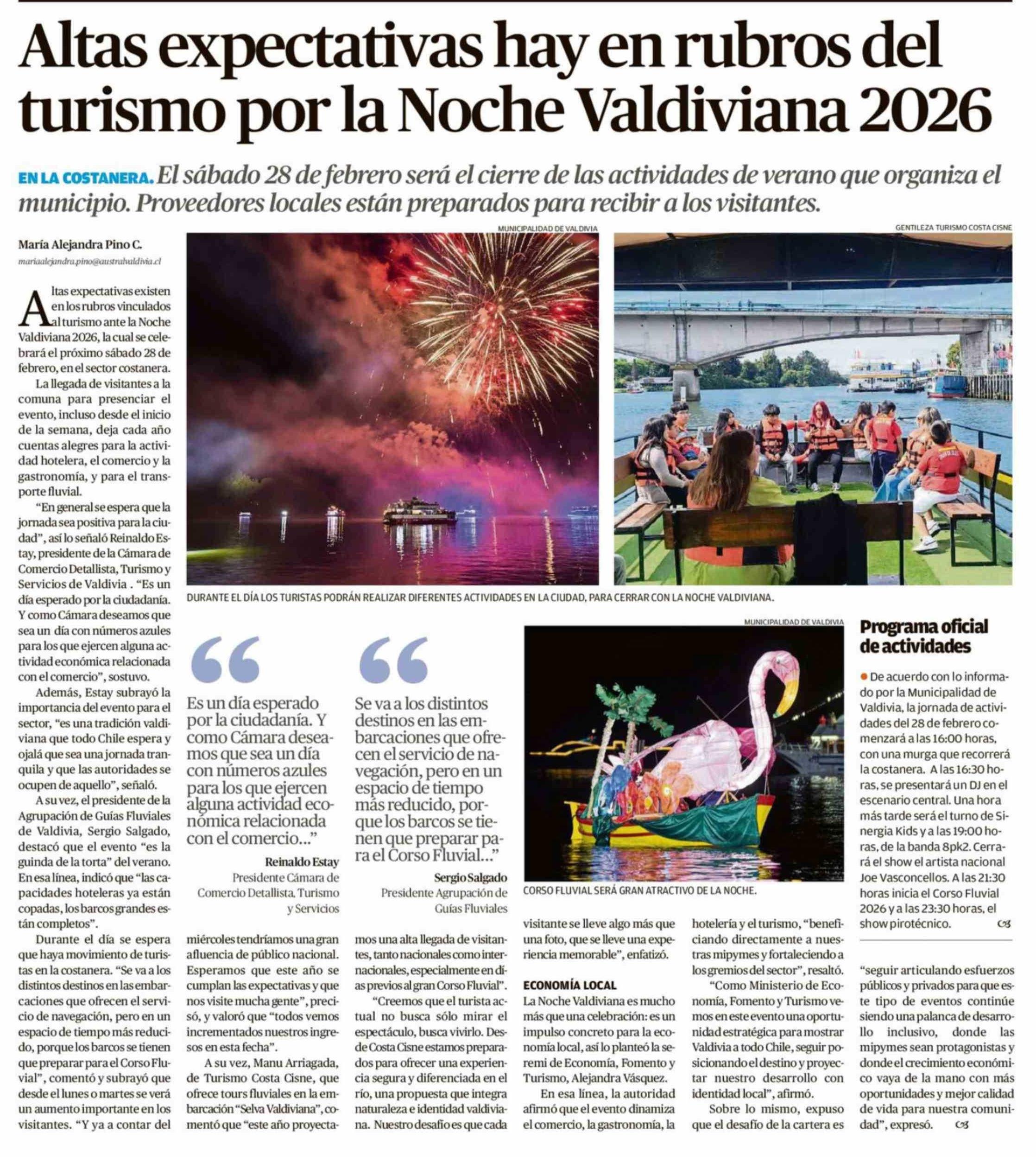 Altas expectativas hay en rubros del turismo por la Noche Valdiviana 2026