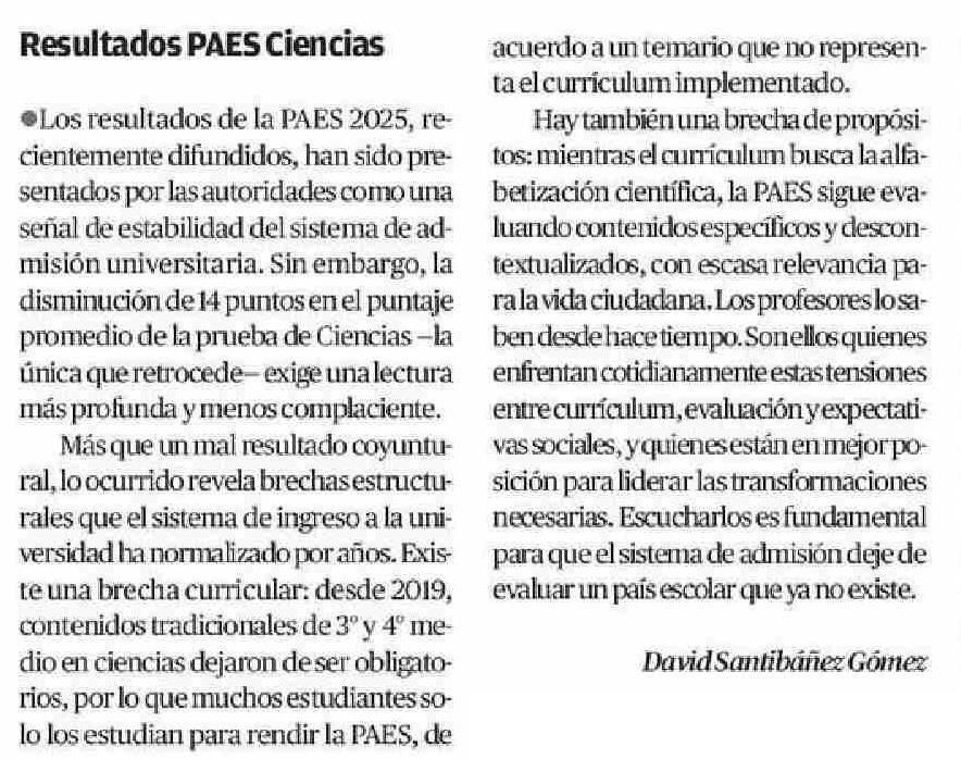 Cartas: Resultados PAES Ciencias
