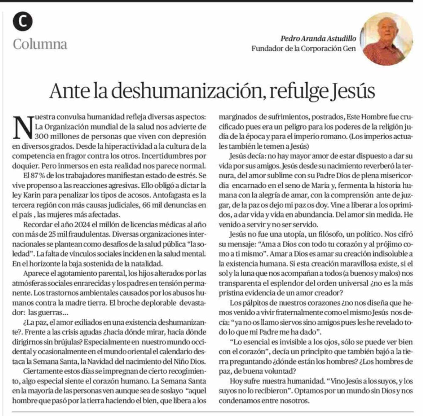 Columnas de Opinión: Ante la deshumanización, refulge Jesús