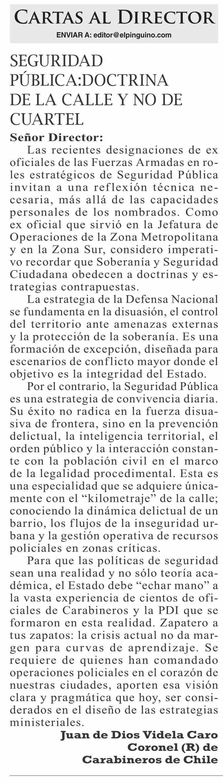 Cartas: SEguridad pública:doctrina dE la callE y no dE cuartEl