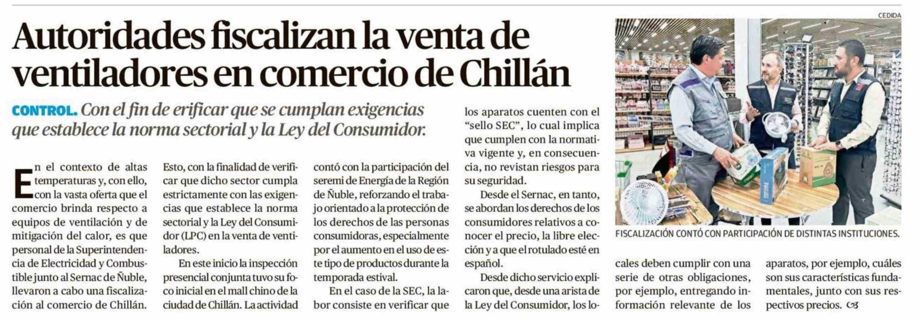 Autoridades fiscalizan la venta de ventiladores en comercio de Chillán