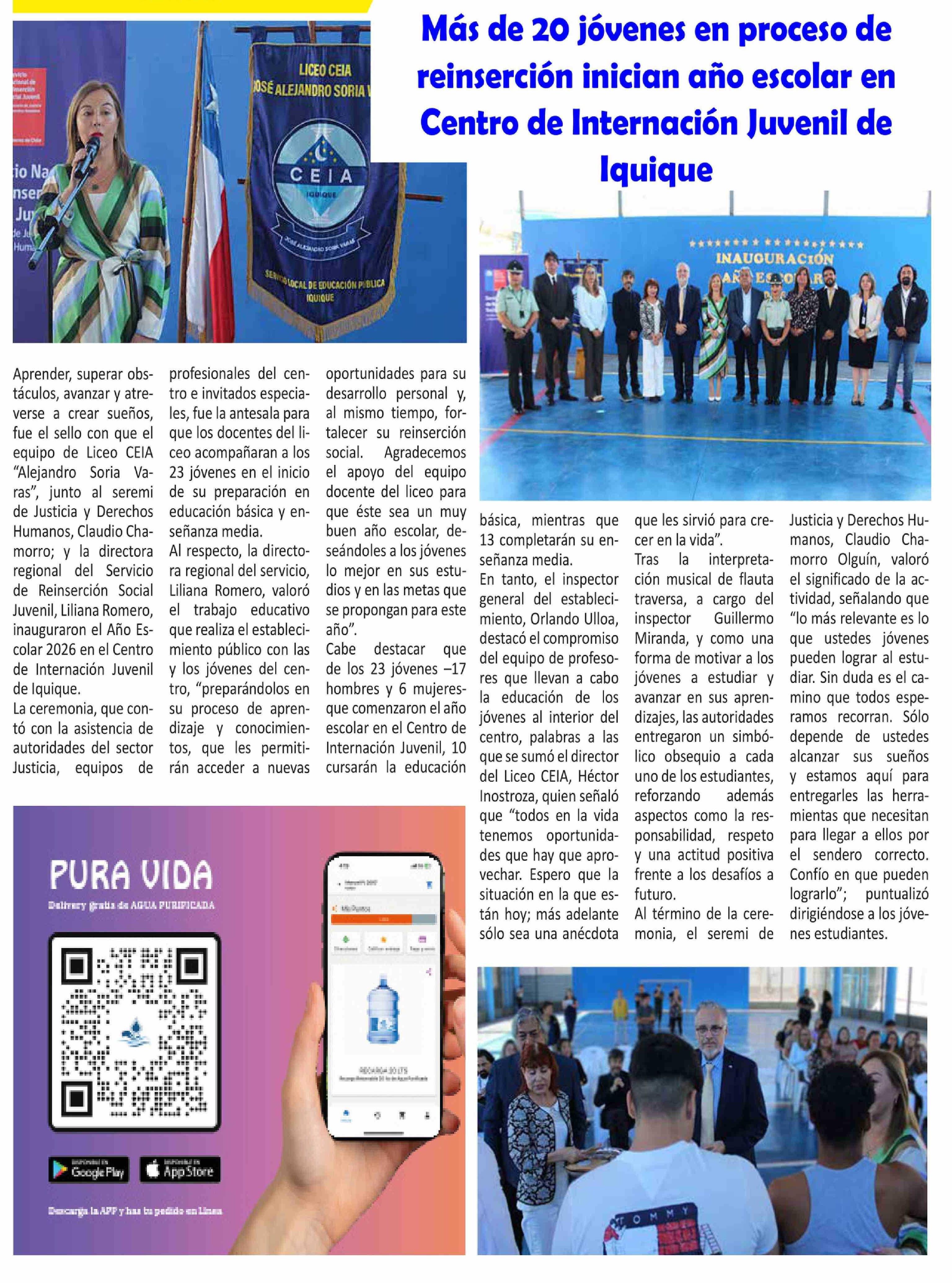 Más de 20 jóvenes en proceso de reinserción inician año escolar en Centro de Internación Juvenil de Iquique