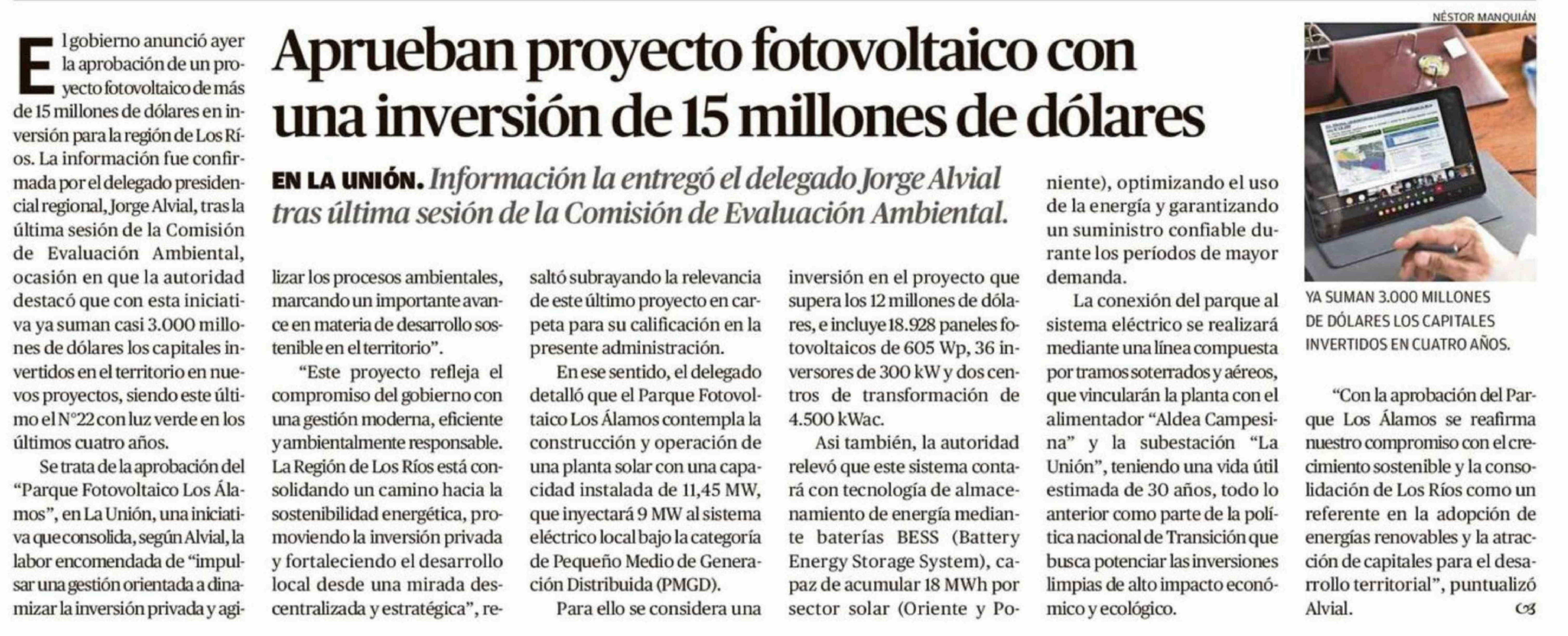 Aprueban proyecto fotovoltaico con una inversión de 15 millones de dólares