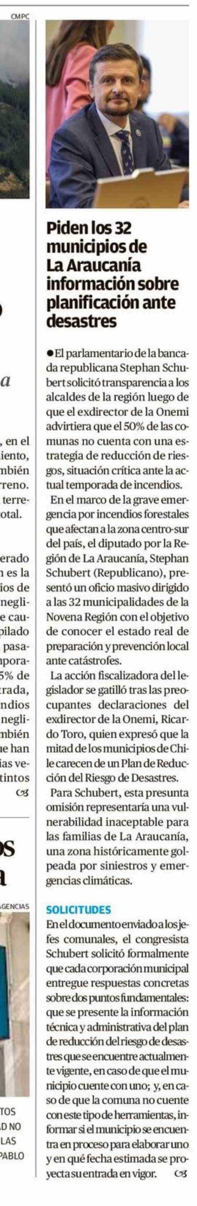 Piden los 32 municipios de La Araucania información sobre planificación ante desastres