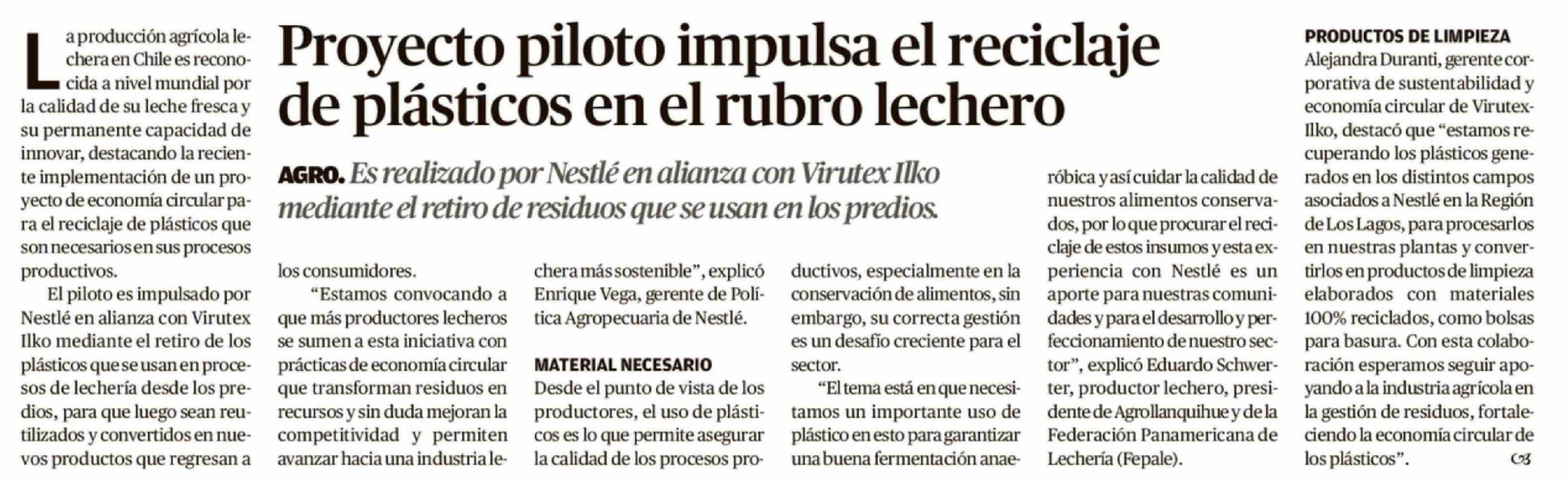 Proyecto piloto impulsa el reciclaje de plásticos en el rubro lechero