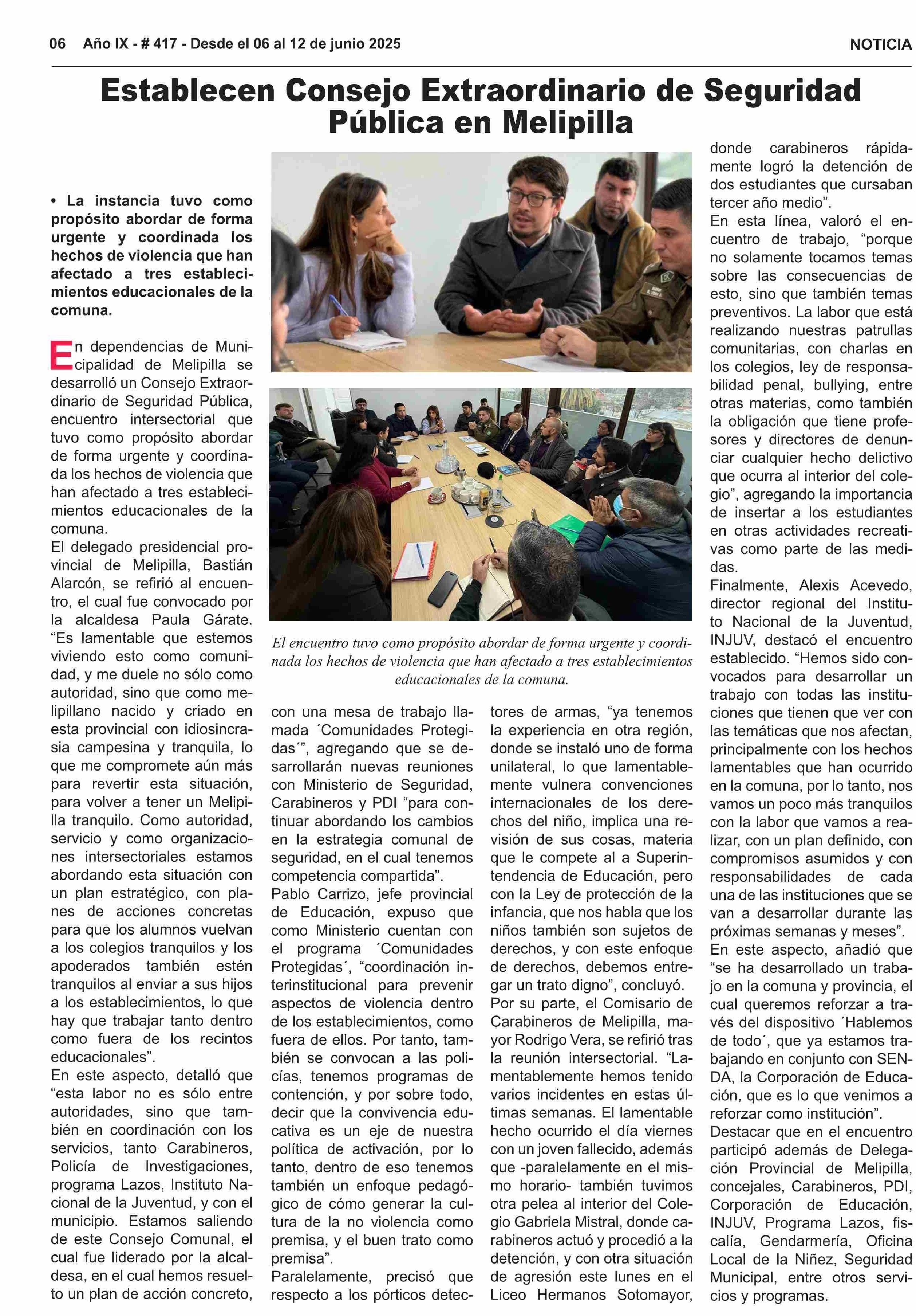 Establecen Consejo Extraordinario de Seguridad Pública en Melipilla