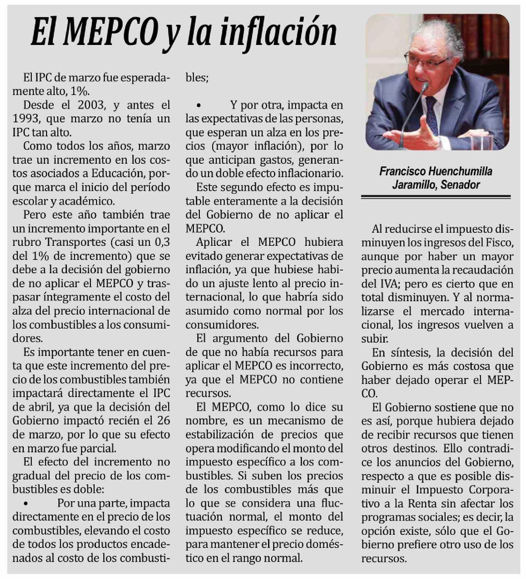 Columnas de Opinión: El MEPCO y la inflación