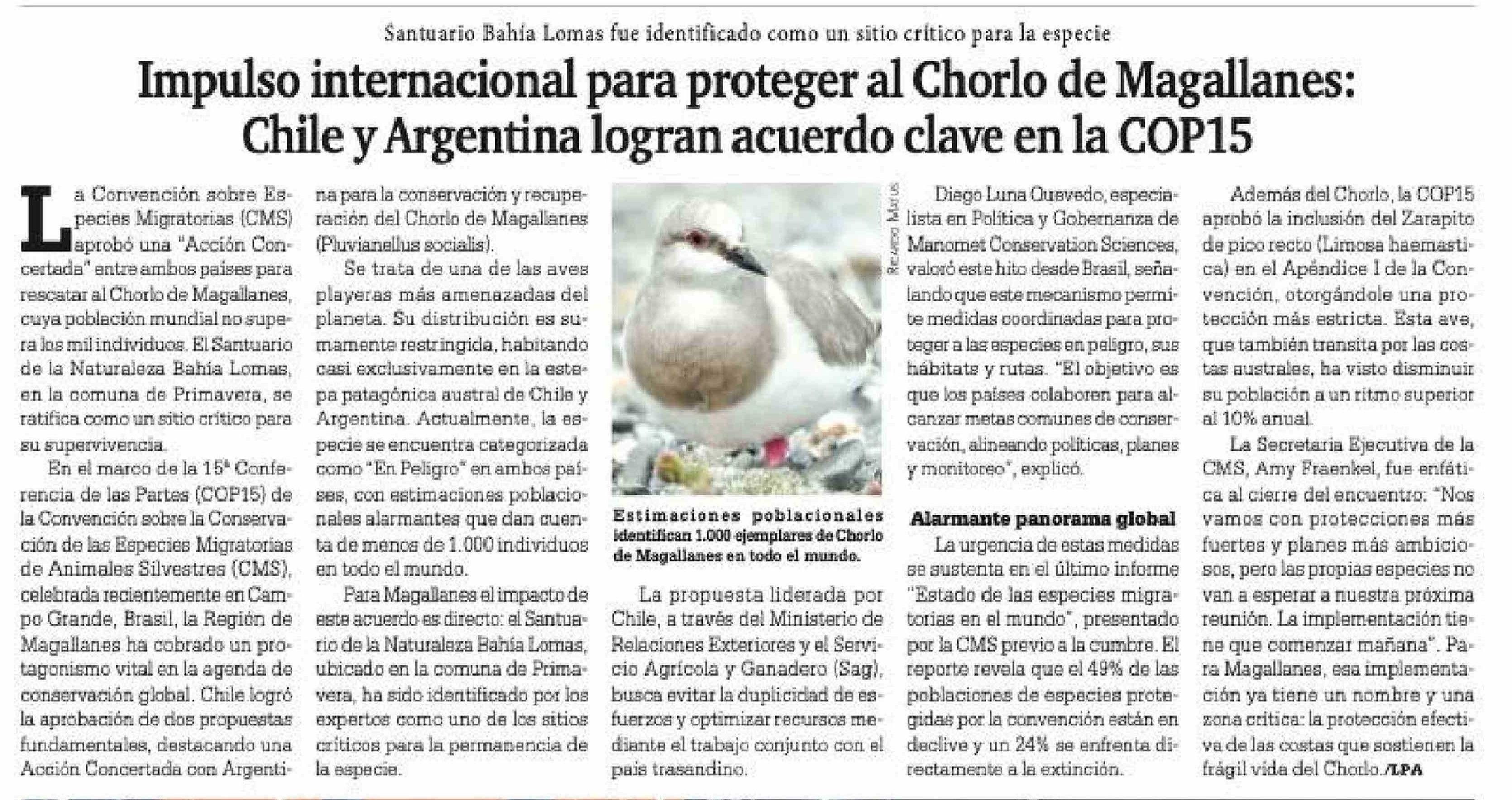 Impulso internacional para proteger al Chorlo de Magallanes: Chile y Argentina logran acuerdo clave en la COP15
