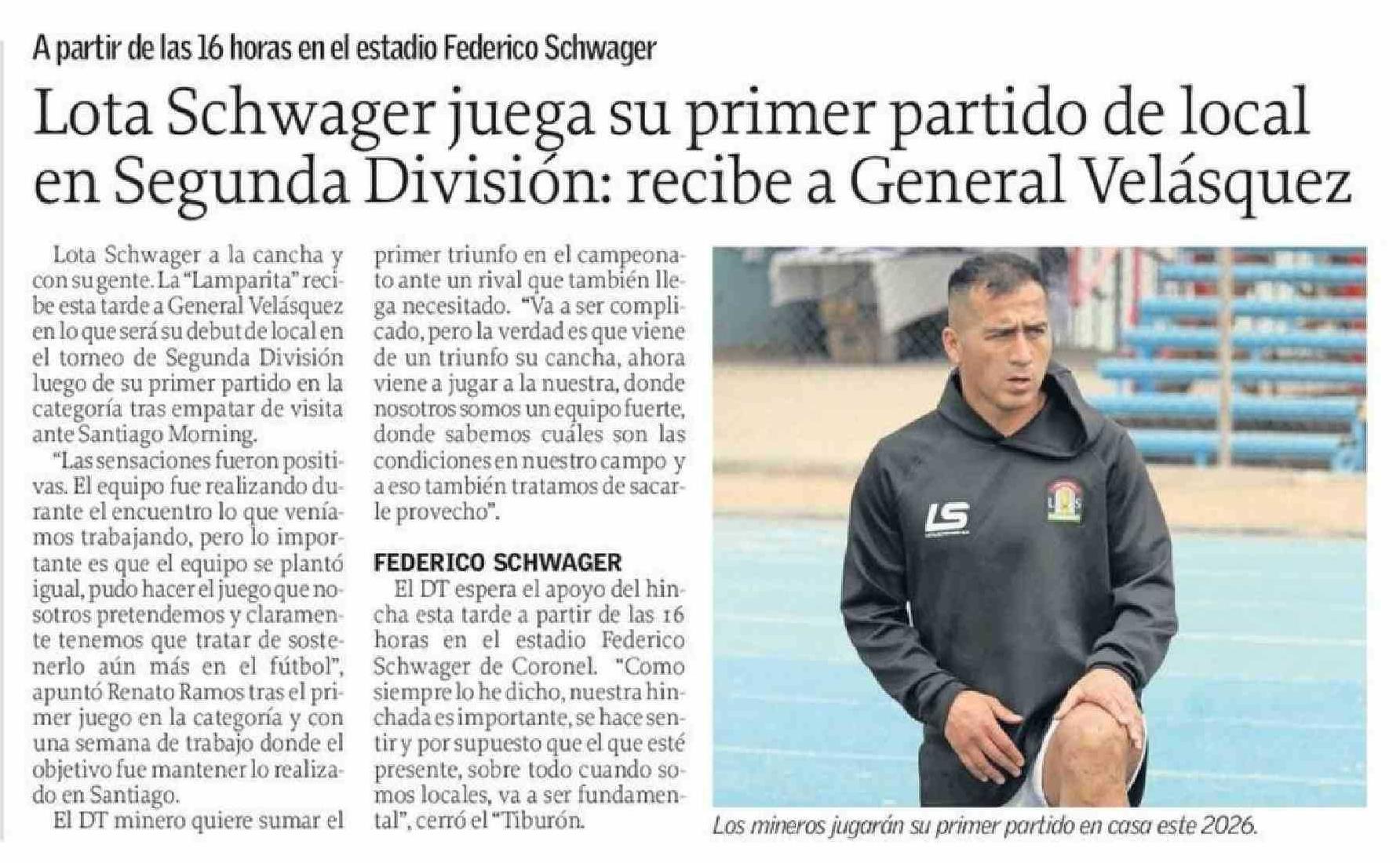 Lota Schwager juega su primer partido de local en Segunda División: recibe a General Velásquez