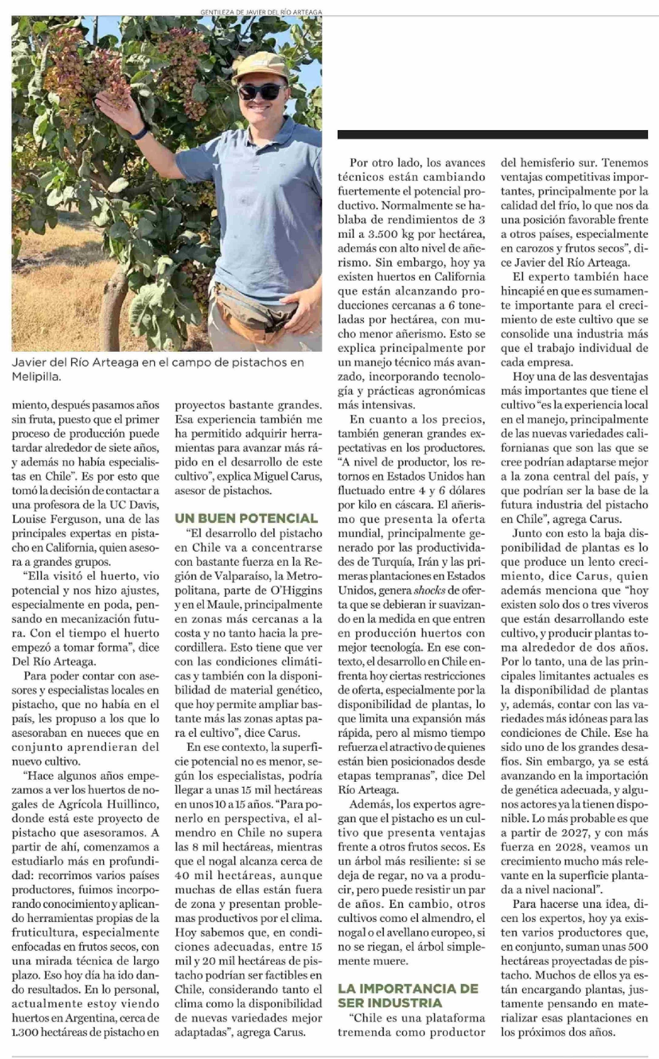Título: Pistachos tienen un gran potencial de crecimiento