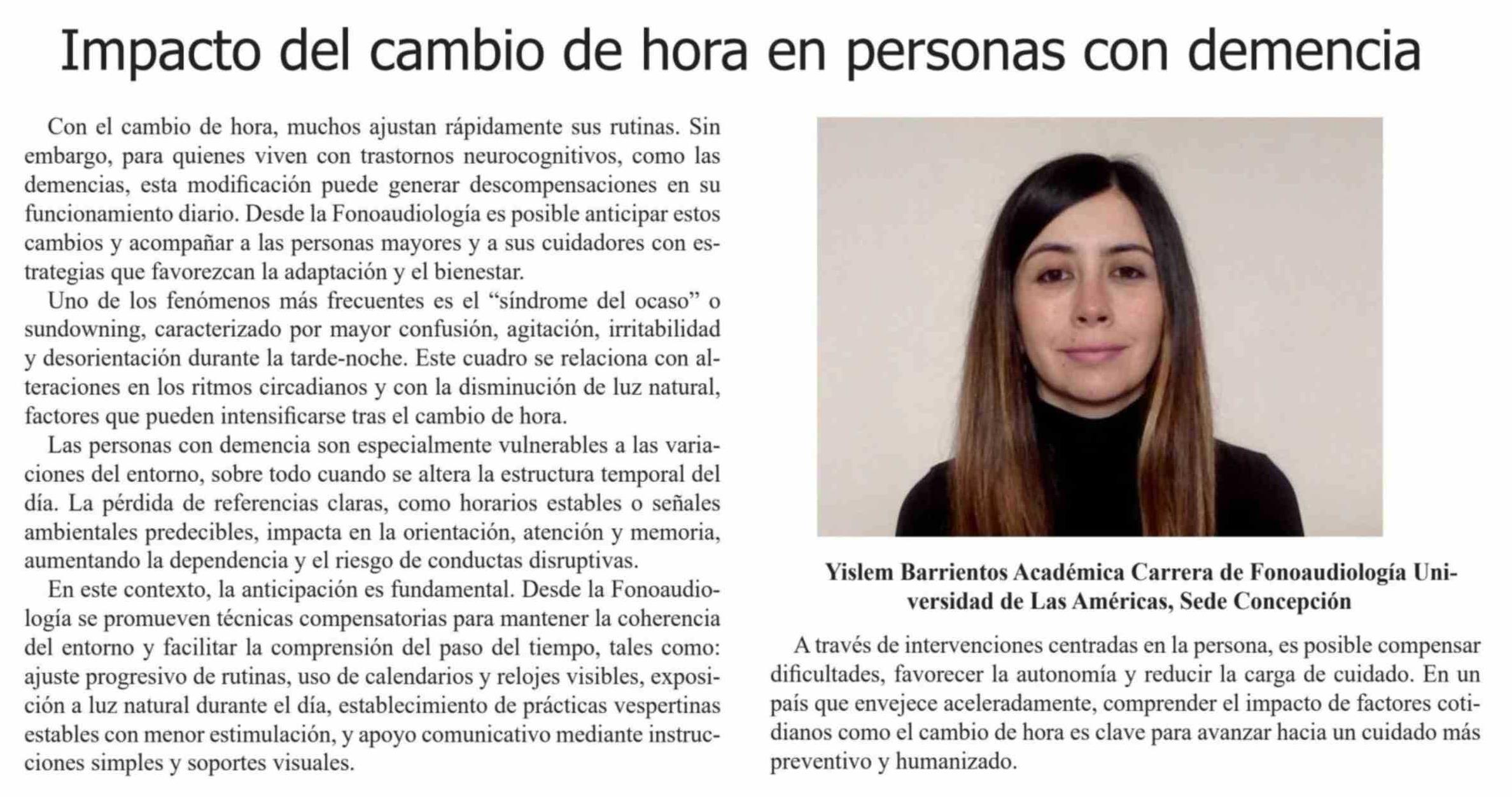Columnas de Opinión: Impacto del cambio de hora en personas con demencia