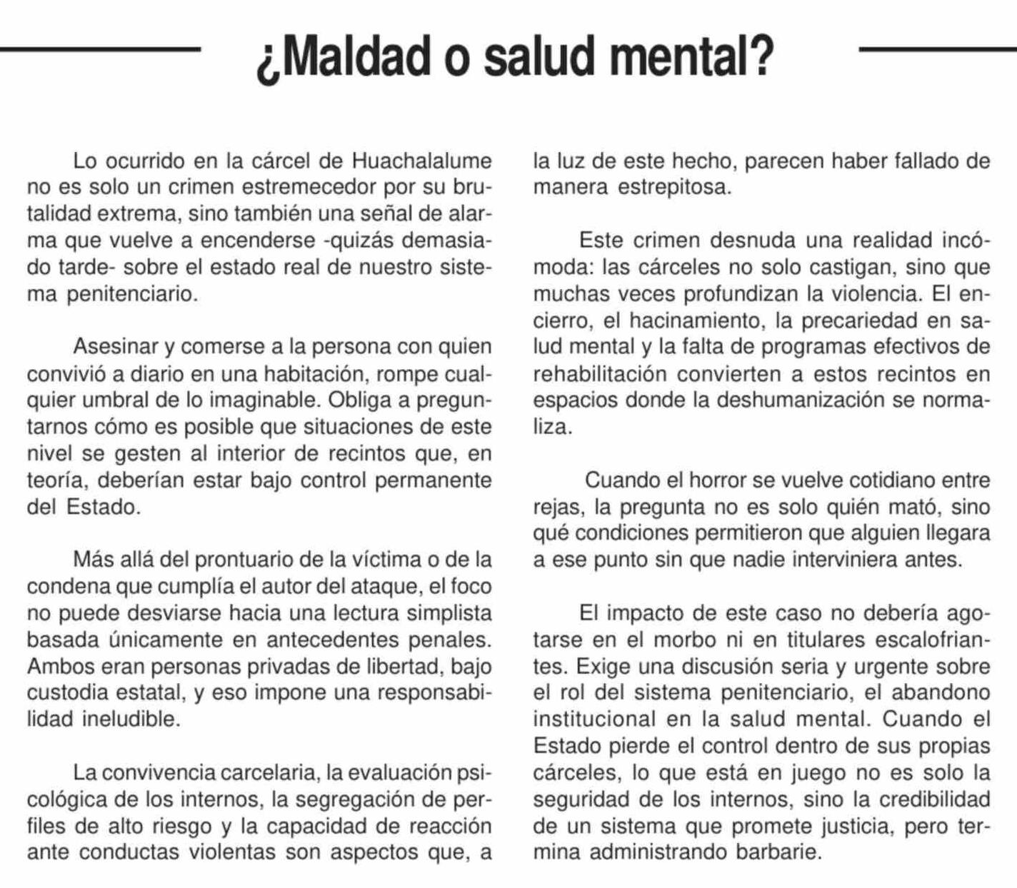 Editorial: ¿Maldad o salud mental?