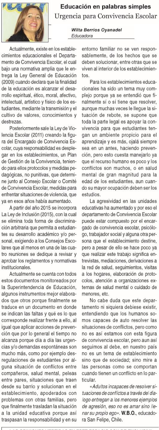 Educación en palabras simples Urgencia para Convivencia Escolar