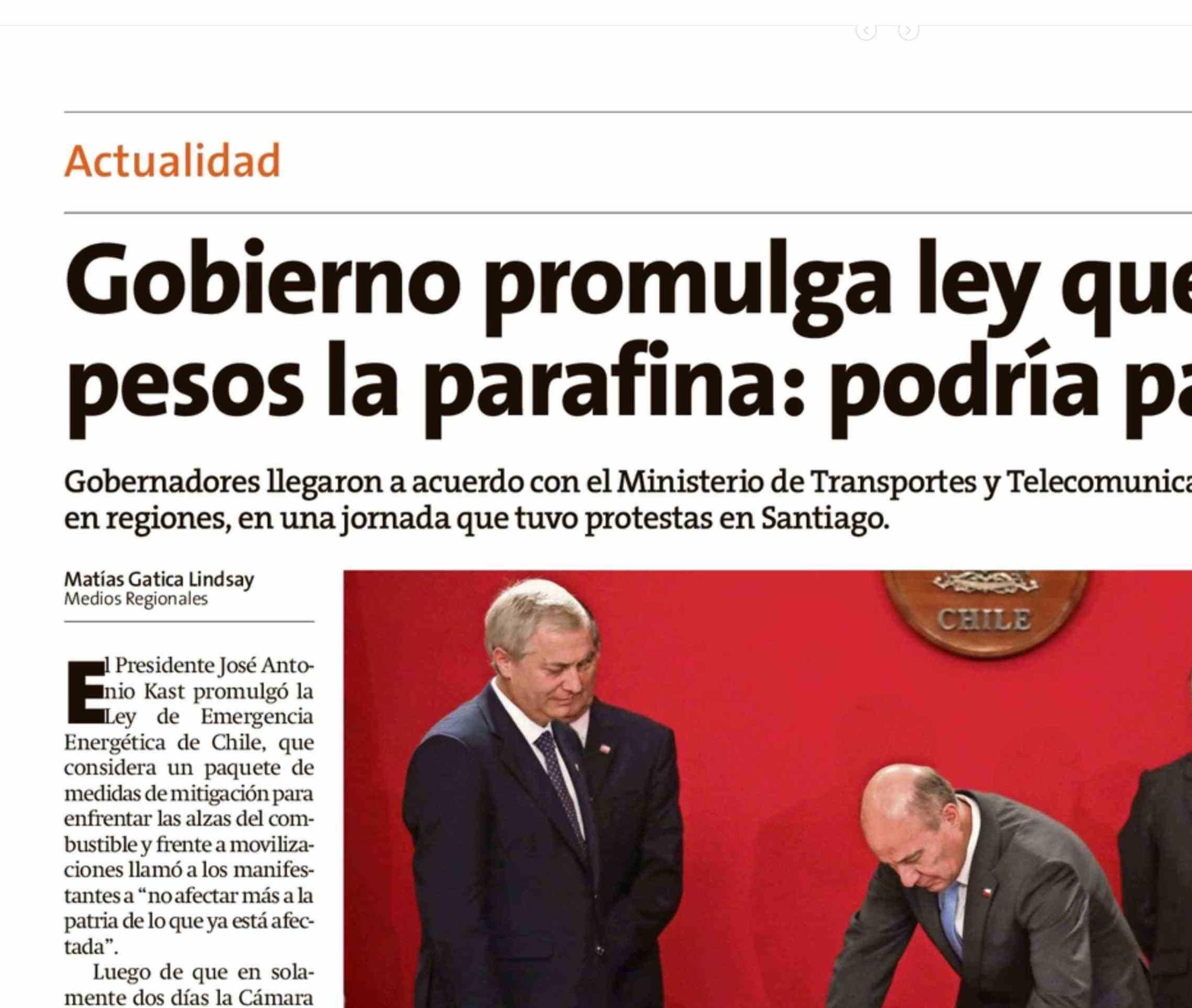 Gobierno promulga ley que baja a mil pesos la parafina: podria partir el lunes