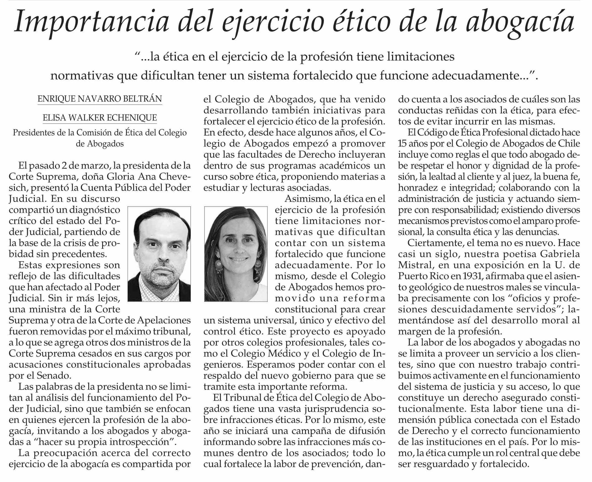 Columnas de Opinión: Importancia del ejercicio ético de la abogacía