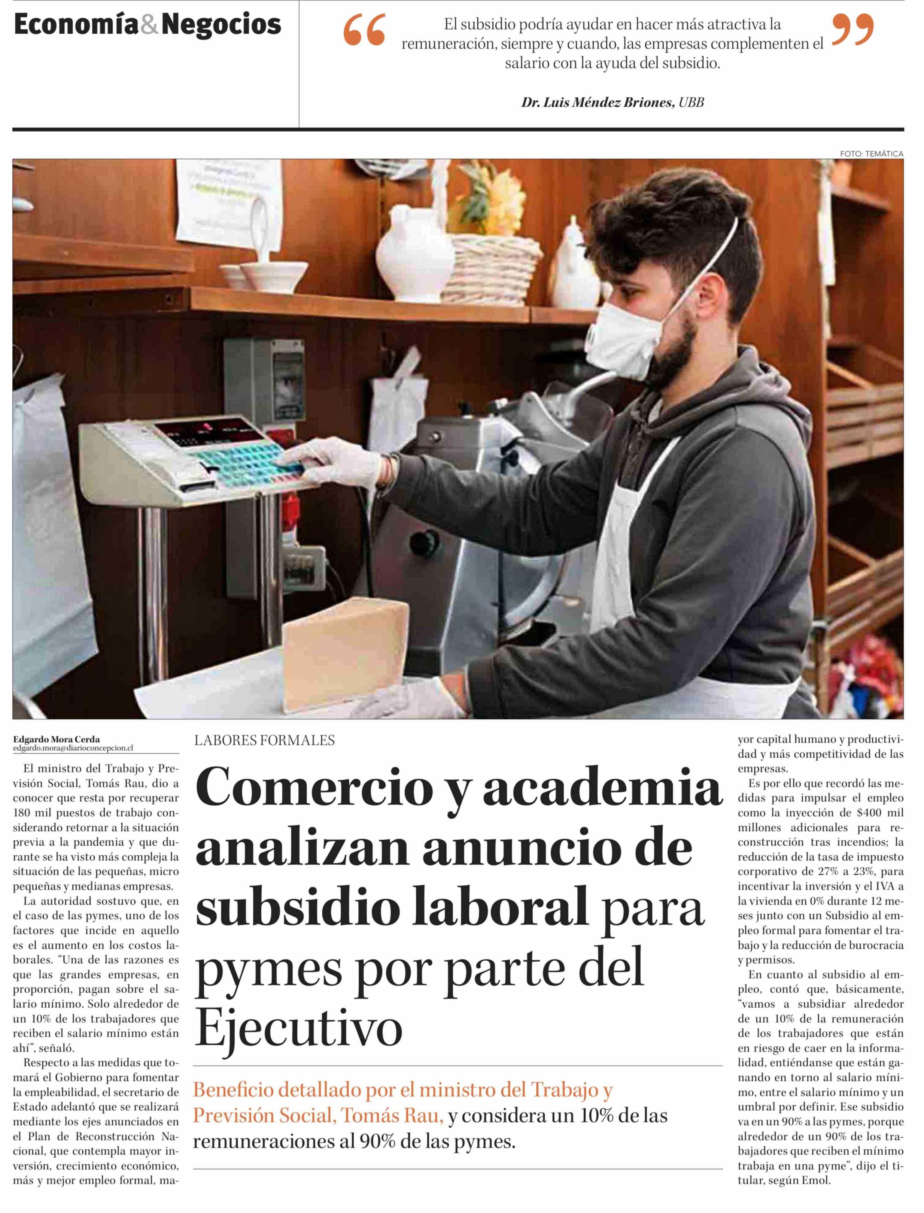 Comercio y academia analizan anuncio de subsidio laboral para pymes por parte del Ejecutivo